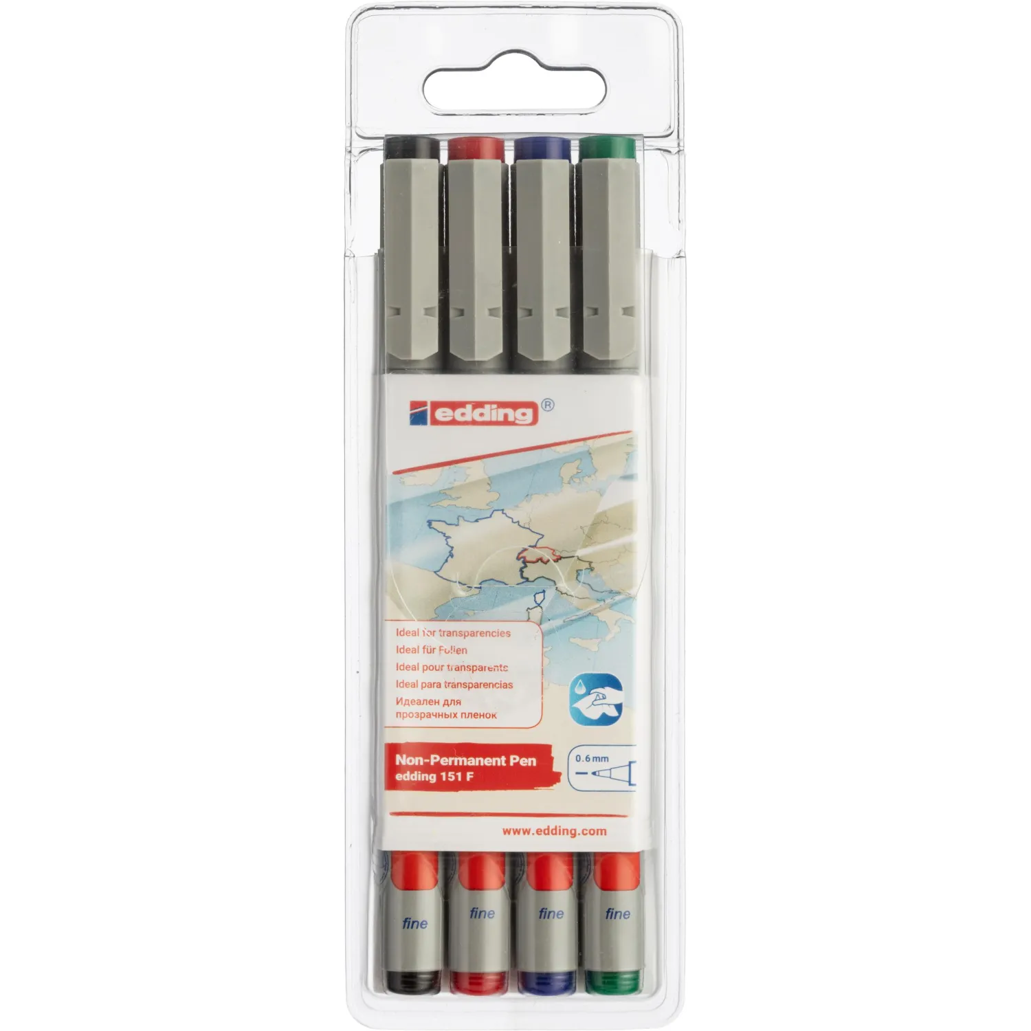 Набор маркеров промышленных Edding E-151/4S на водной основе для глянцевых поверхностей 4 цвета 0.6 мм