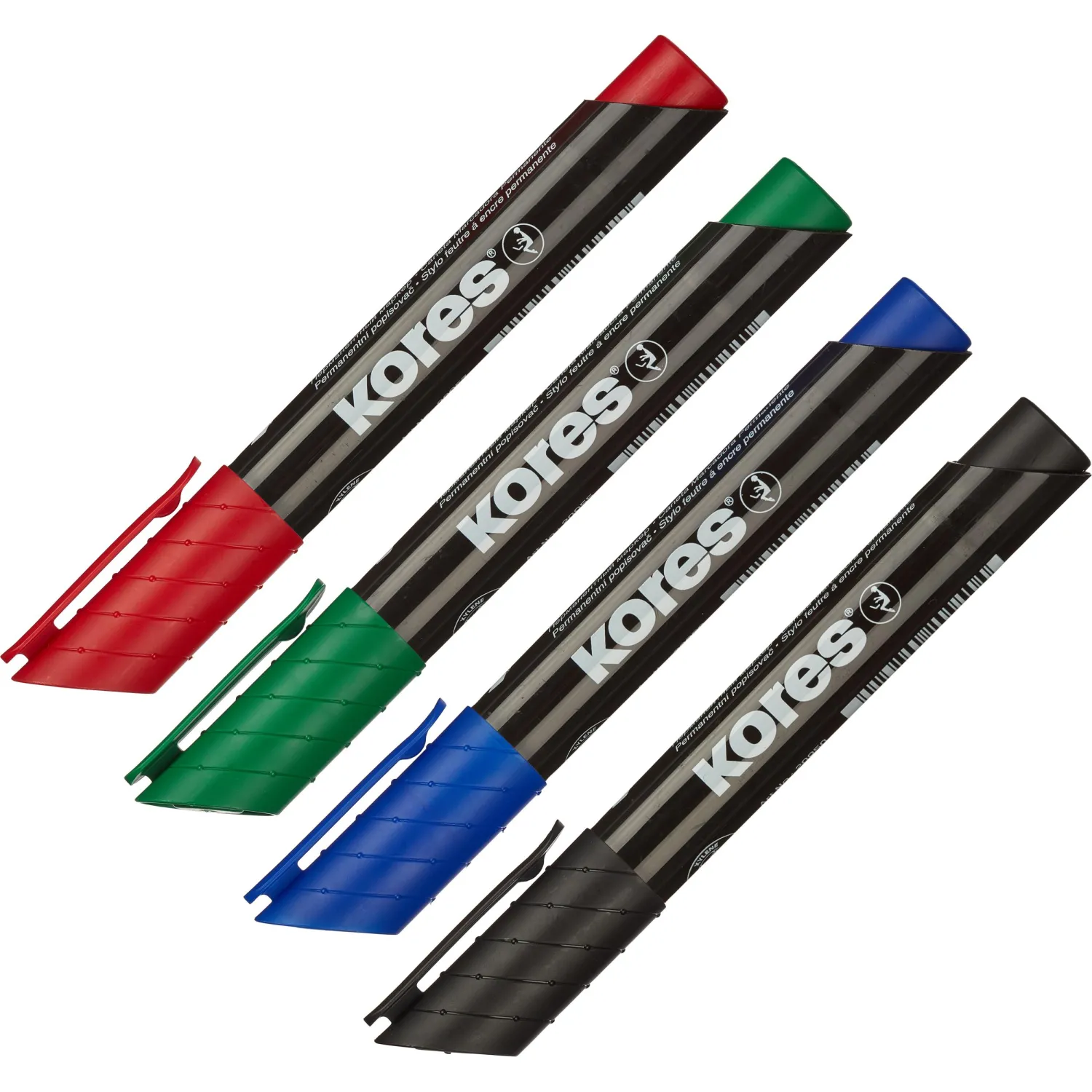 Набор маркеров перманентных Kores 20943 4 цвета (толщина линии 1,5-3 мм) круглый наконечник