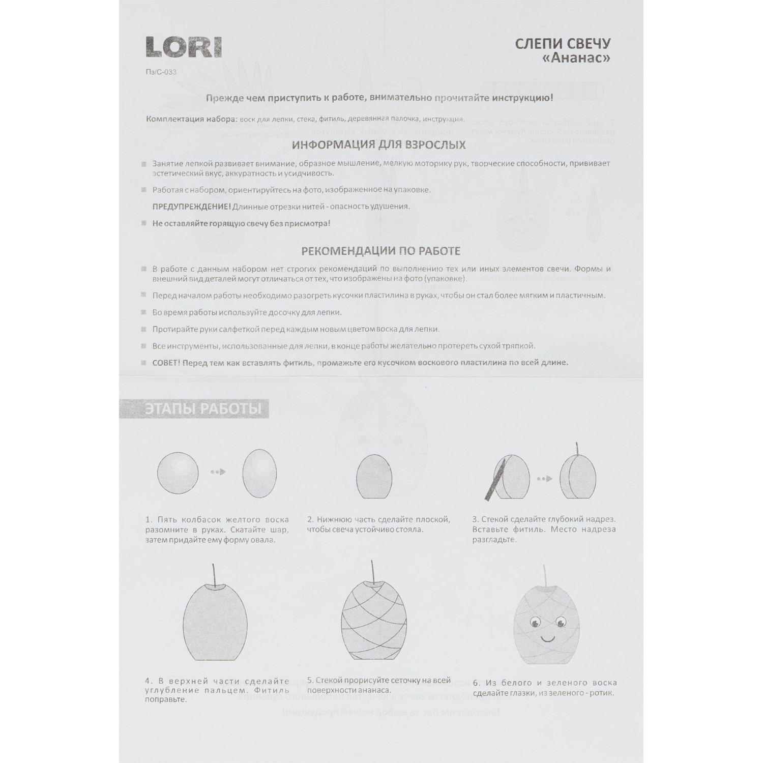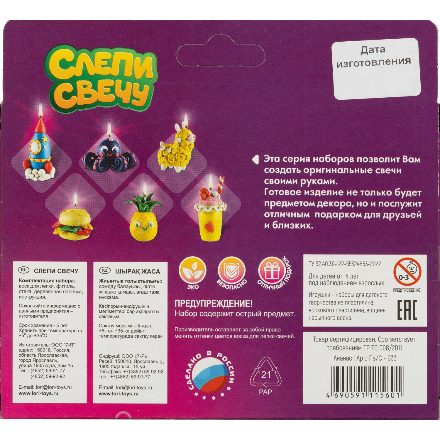 Набор для творчества позволяет слепить свечу в форме ананаса. Занятие с воском помогает детям развивать моторику, усидчивость и воображение, а также даёт возможность проявить творческое мышление. Готовое изделие отличается ярким видом и может использоваться как полноценная свеча.