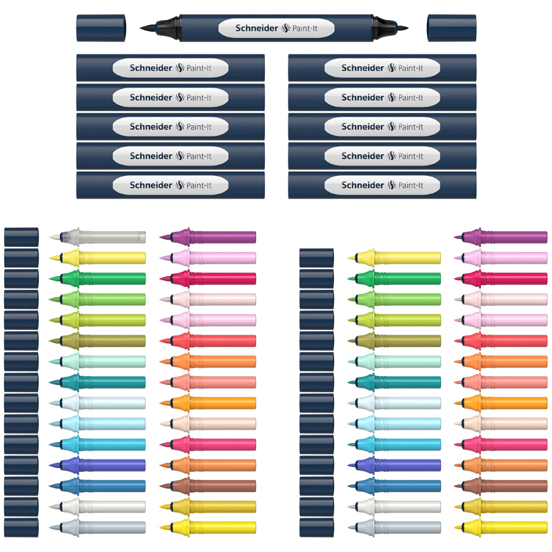 Набор двухсторонних маркеров-кистей Schneider "Twinmarker Paint-It" 52 предмета, на водной основе, кисть/пулевидный