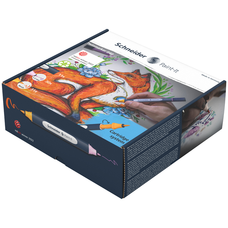 О товаре «Набор двухсторонних маркеров-кистей Schneider "Twinmarker Paint-It" 72 предмета, на водной основе, кисть/пулевидный»