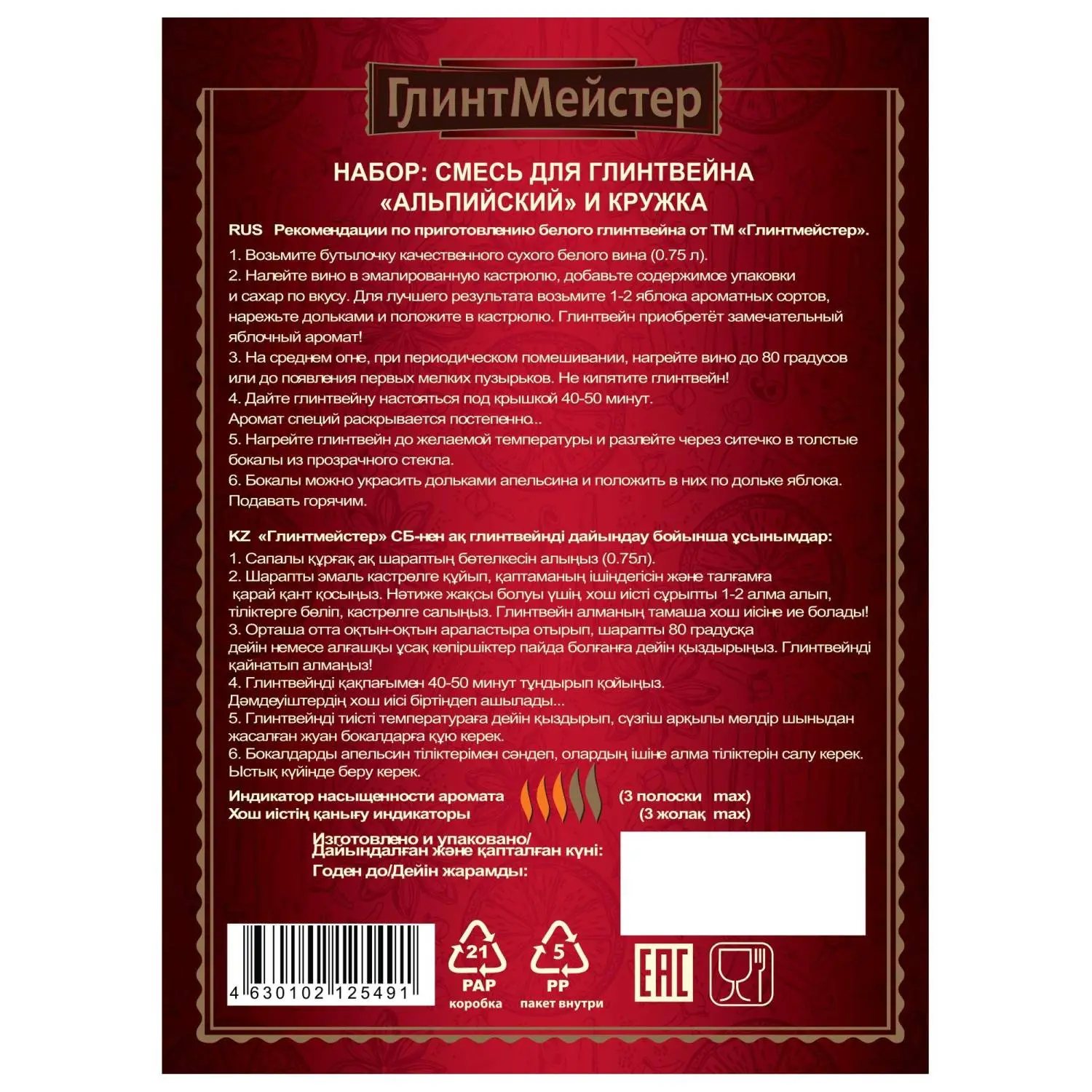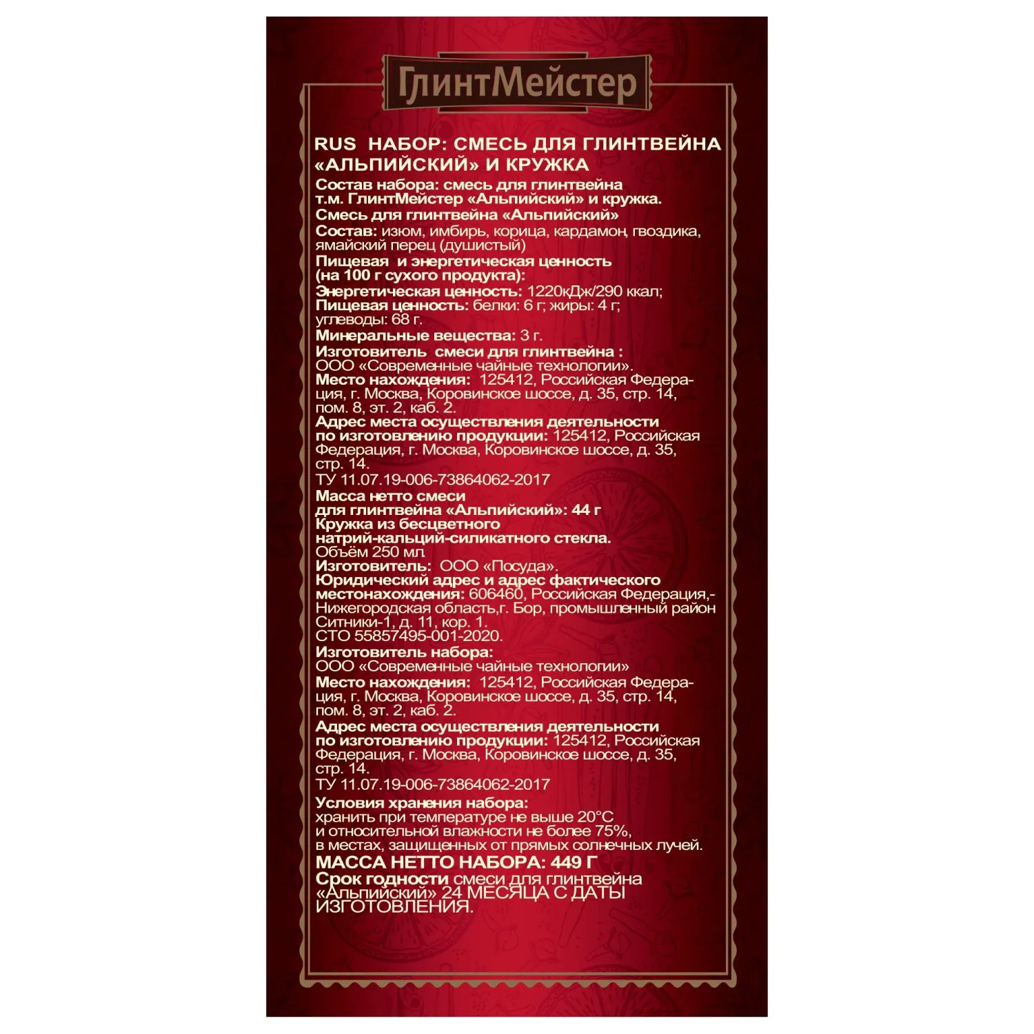 О товаре «Набор ГлинтМейстер Альпийский смесь для глинтвейна с кружкой, 44г»