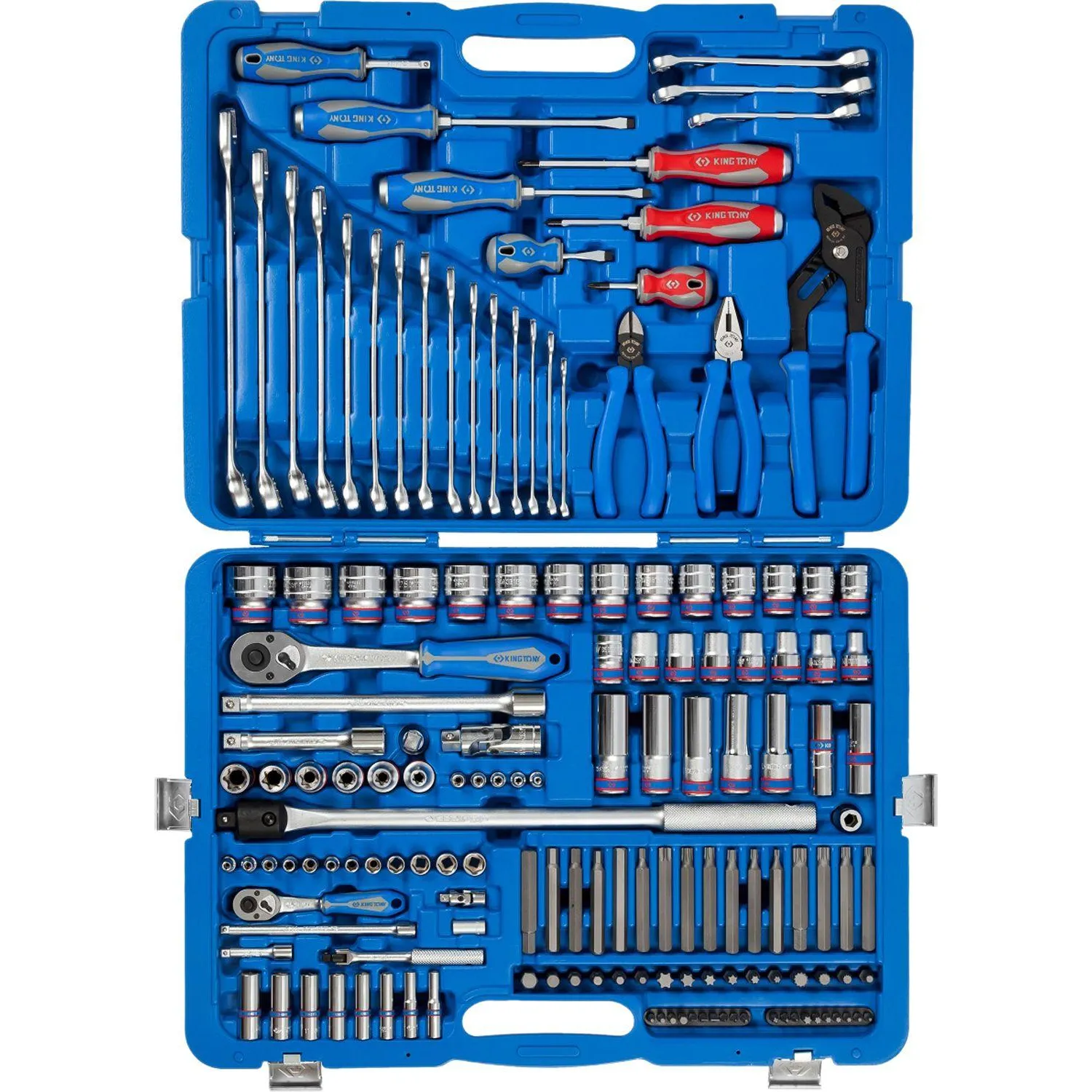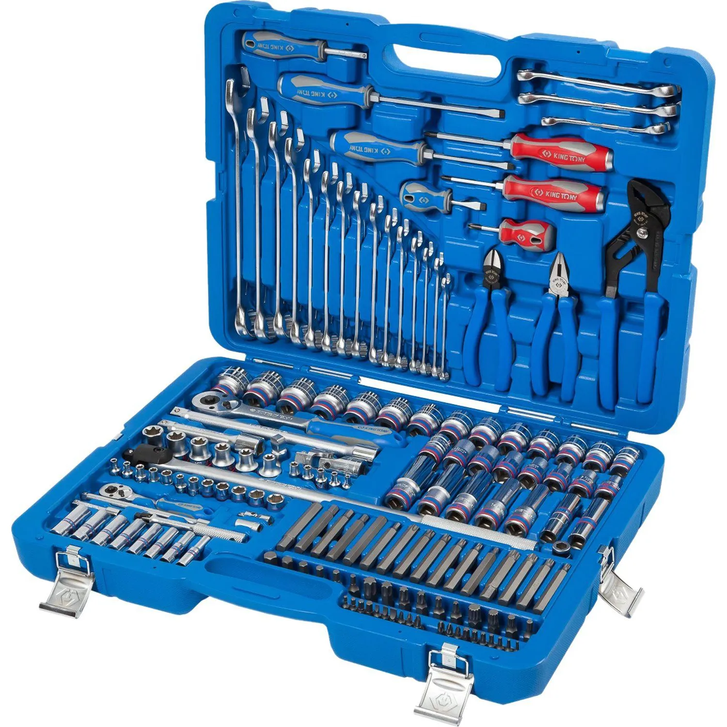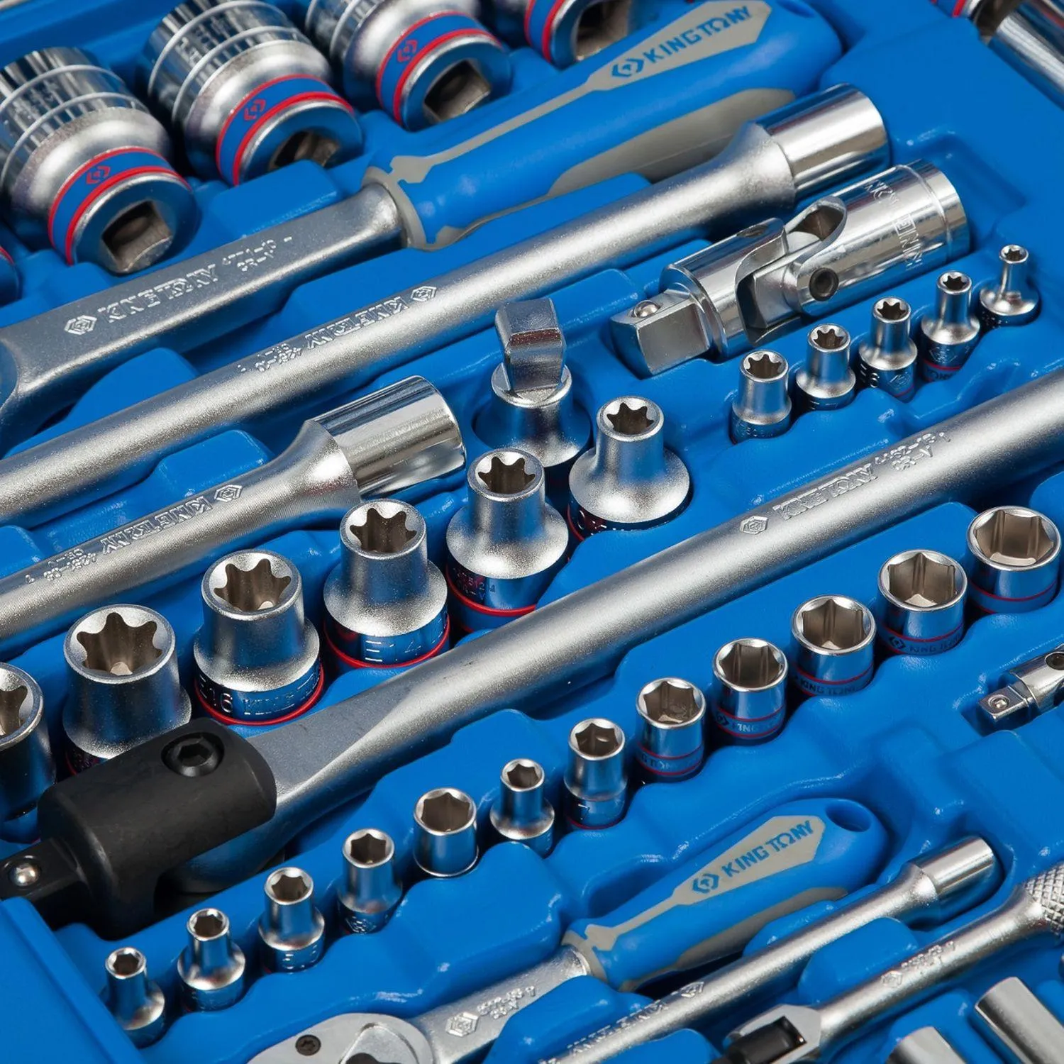 Набор King Tony P7553MR03 подойдёт в качестве надёжного помощника для любого автомобиля в дороге, для работы в гараже, а также в любой мастерской или станции ТО. Отличная комплектация набора делает его незаменимым помощником практически для любого применения. головки и принадлежности 2-х форматов присоединительного квадрата: 1/2″ и 1/4″. Широкий ряд размеров стандартных торцевых головок и вставок 1/4″ и 10 мм Набор изготовлен из высокопрочной легированной хром-ванадиевой инструментальной стали, а хромированное покрытие защищает инструмент от коррозии.
