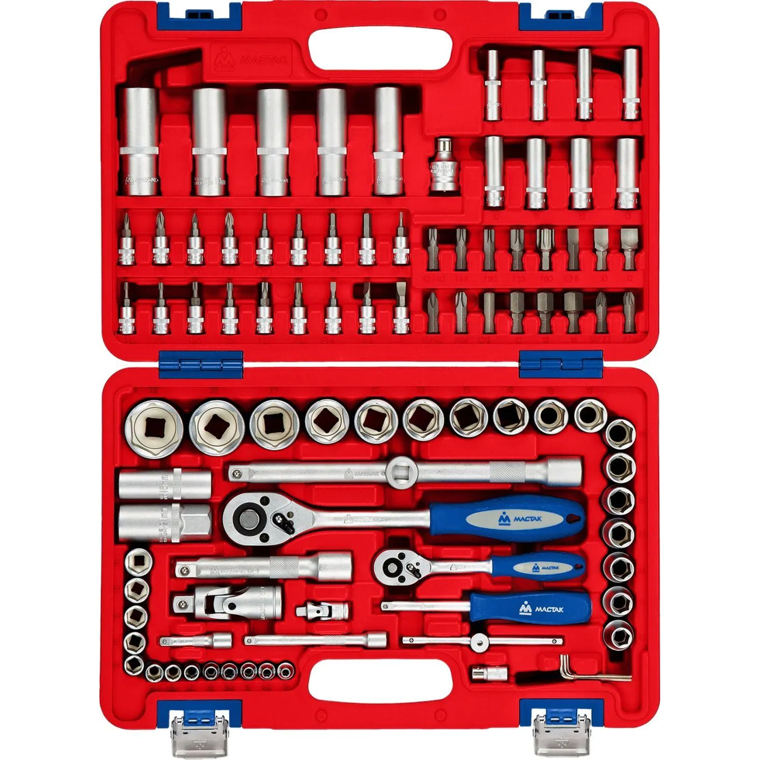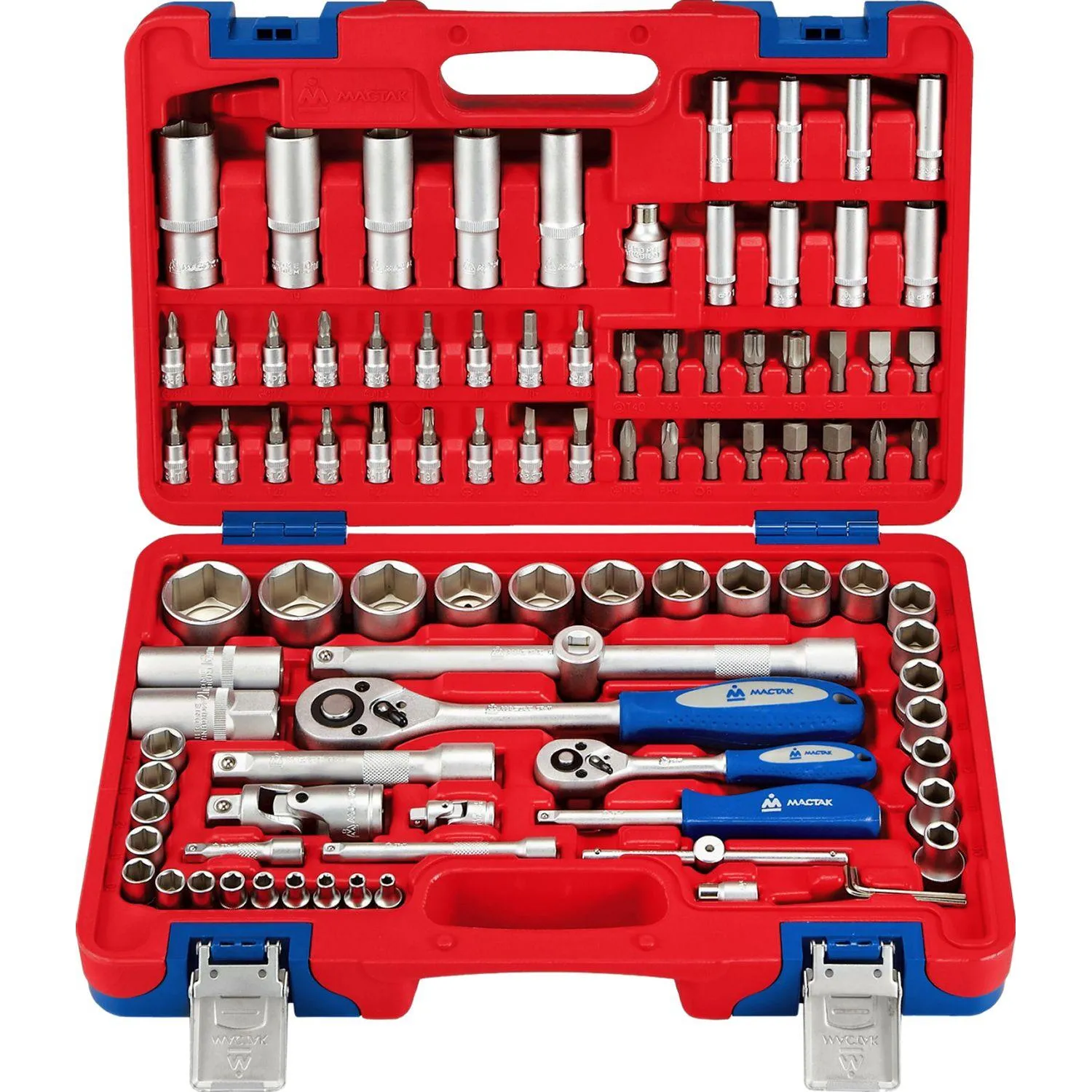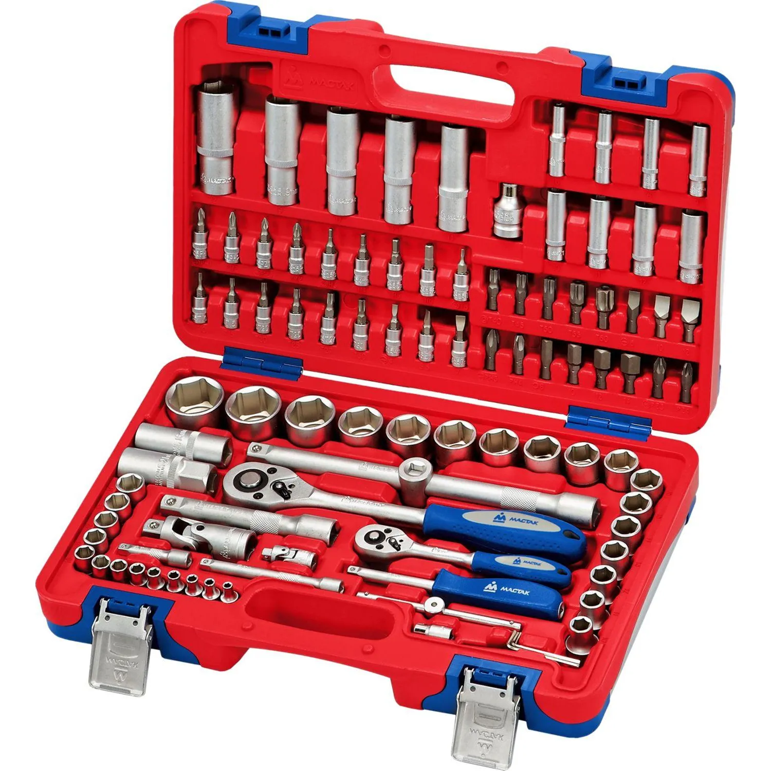 Инструменты марки Мастак изготовлены из инструментальной легированной хром-ванадиевой стали специального сплава. Технология изготовления ключей и головок включает в себя метод горячей ковки с последующей термообработкой, придающим инструментам особую прочность и высокую надёжность, что даёт возможность профессионального использования набора в условиях автосервисной мастерской, станции технического обслуживания, а также на производстве. Хромированное покрытие защищает инструменты от коррозии, специальная насечка на ободке головок, рукоятках воротков и других силовых инструментов исключает проскальзывание руки при работе. Кейс, изготовленный из прочного пластика, устойчив к ударам, удобен для хранения, защищает инструмент от утери и воздействия влаги.