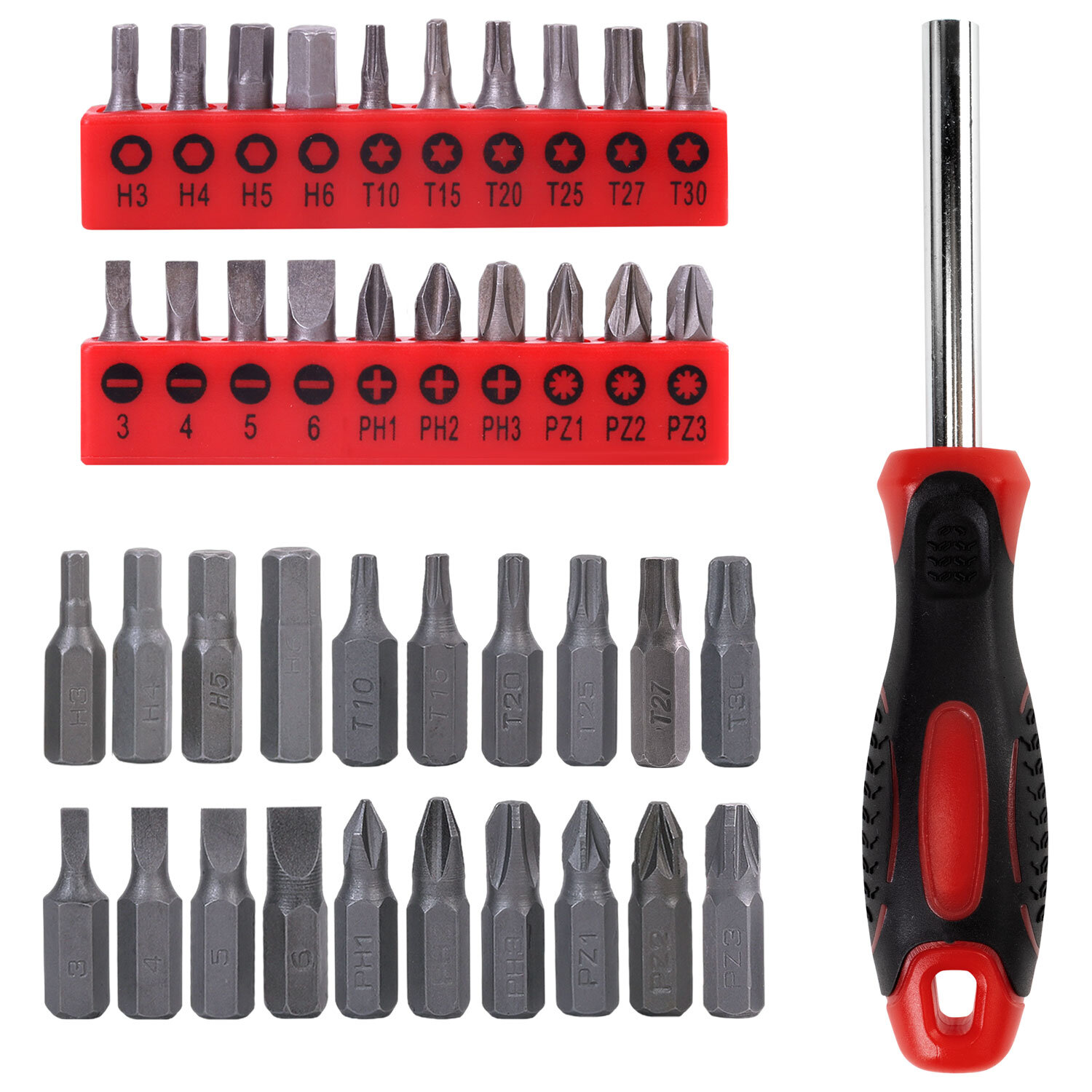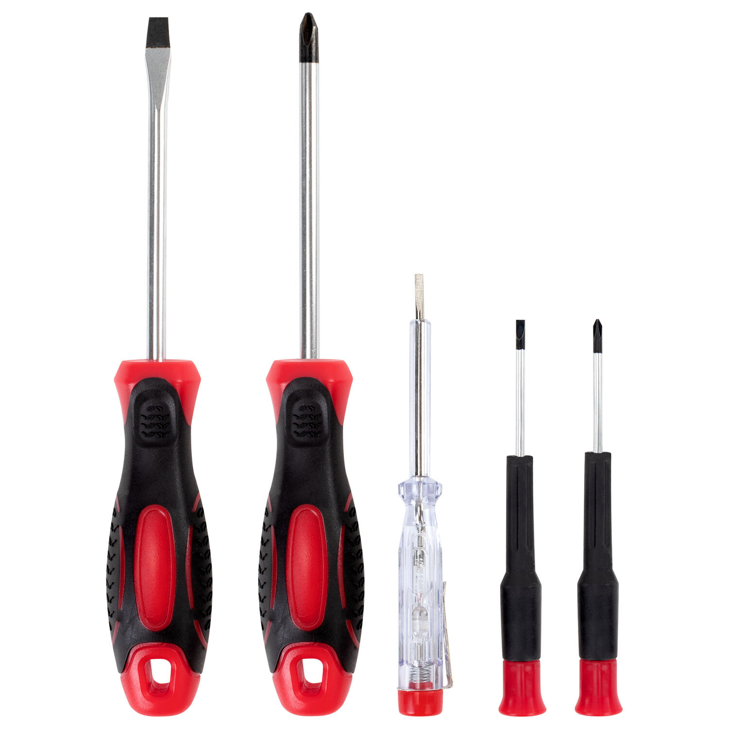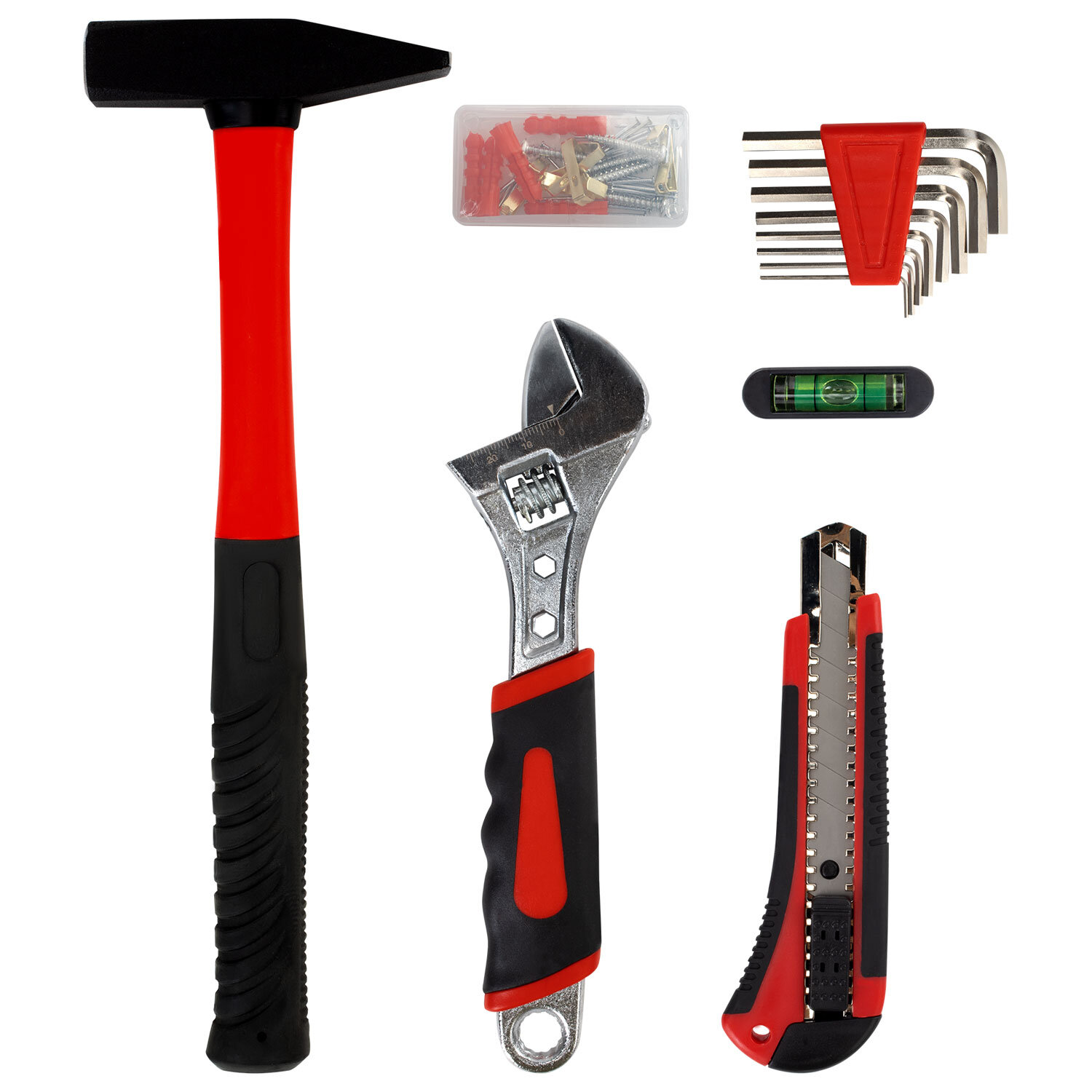 Инструменты изготовлены из закалённой углеродистой стали. Рукоятки выполнены из нескользящего ПВХ для максимального комфорта и безопасности во время использования. В состав набора входят инструменты, необходимые в столярно-слесарном деле, для ремонта автомобиля и любой колесной техники, бытовой техники, а также мебели.