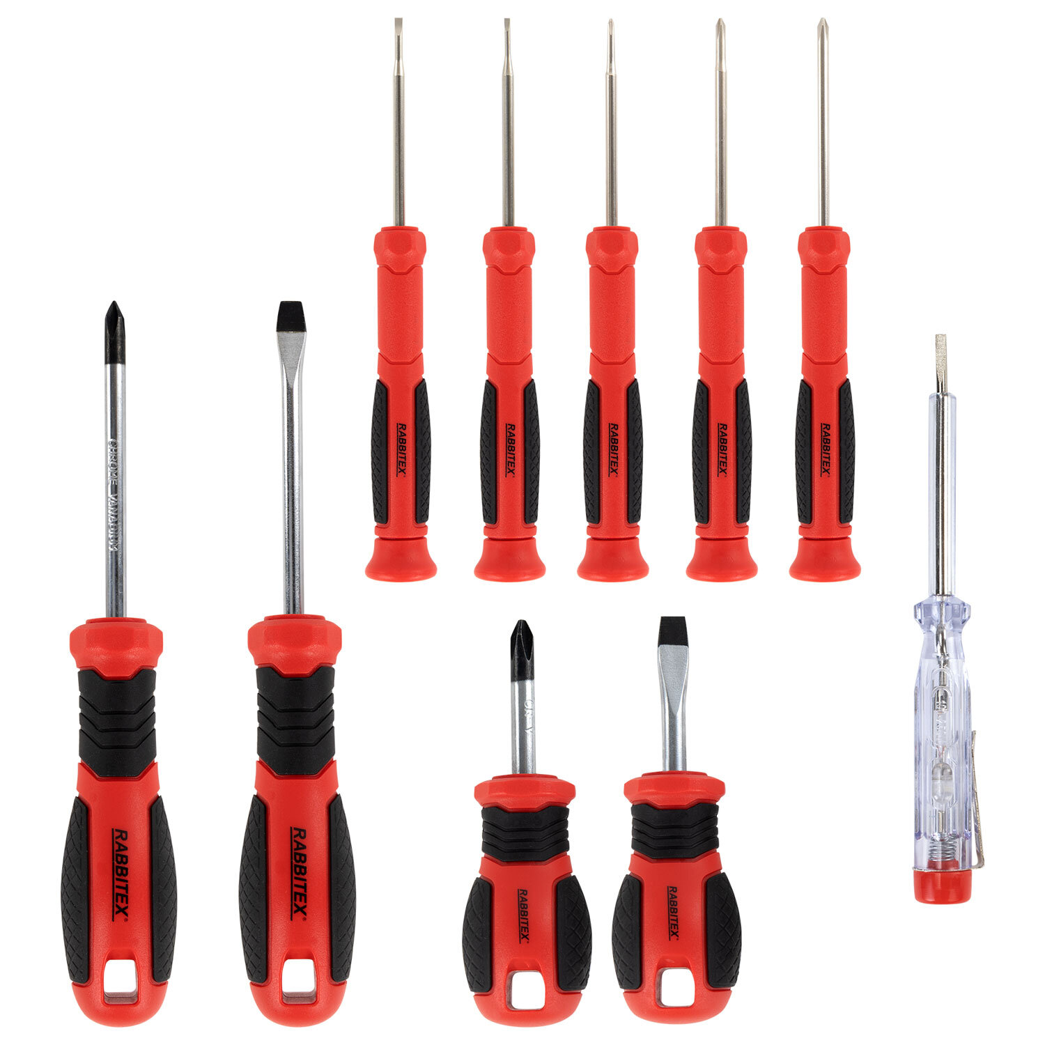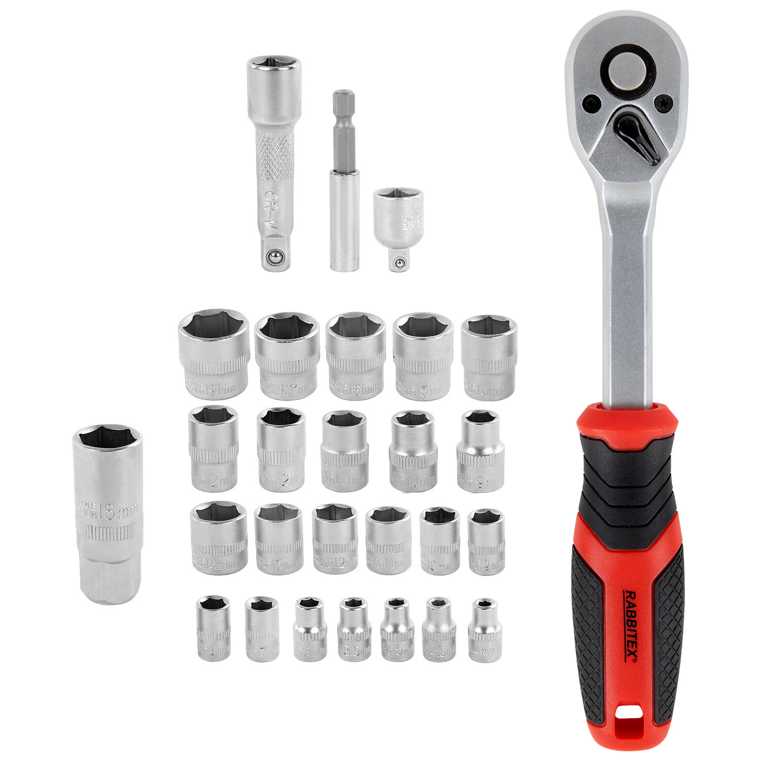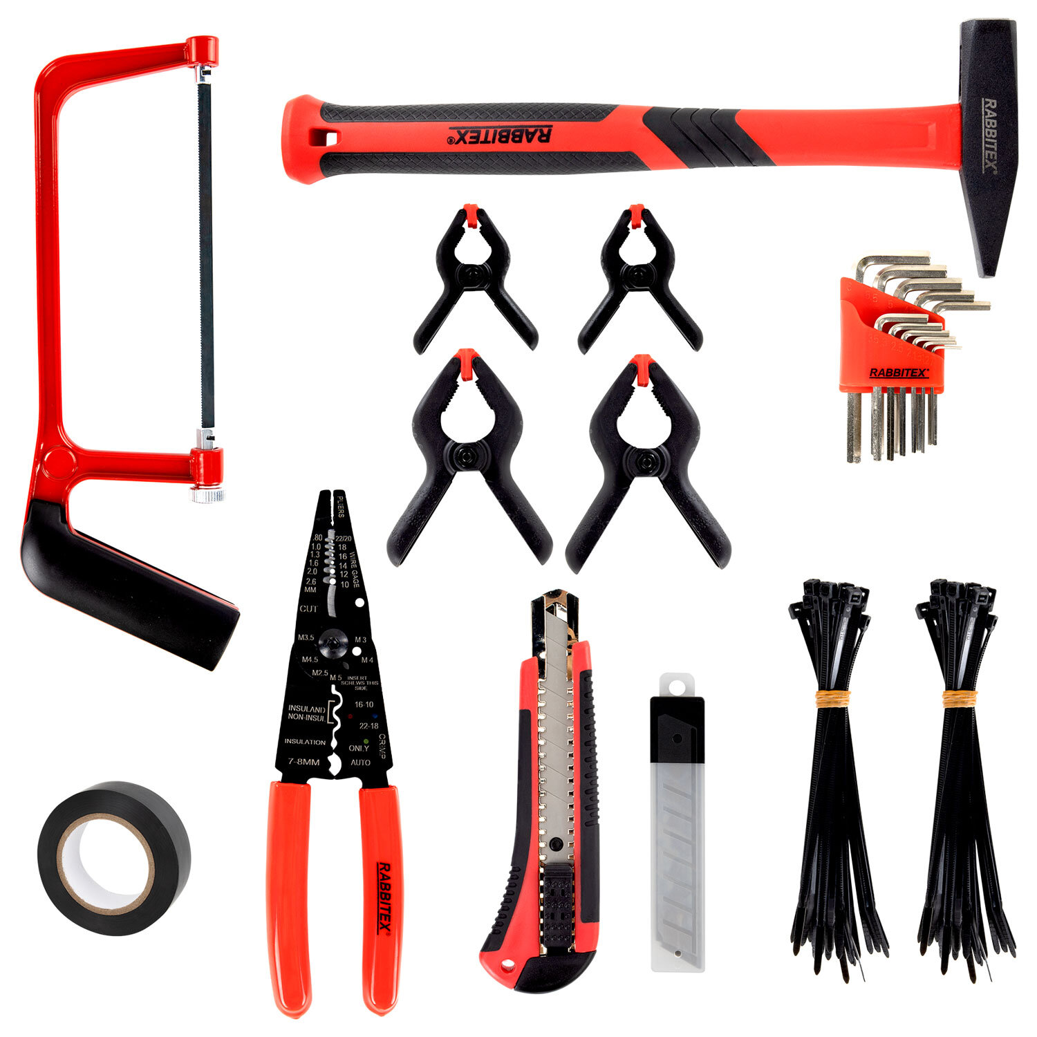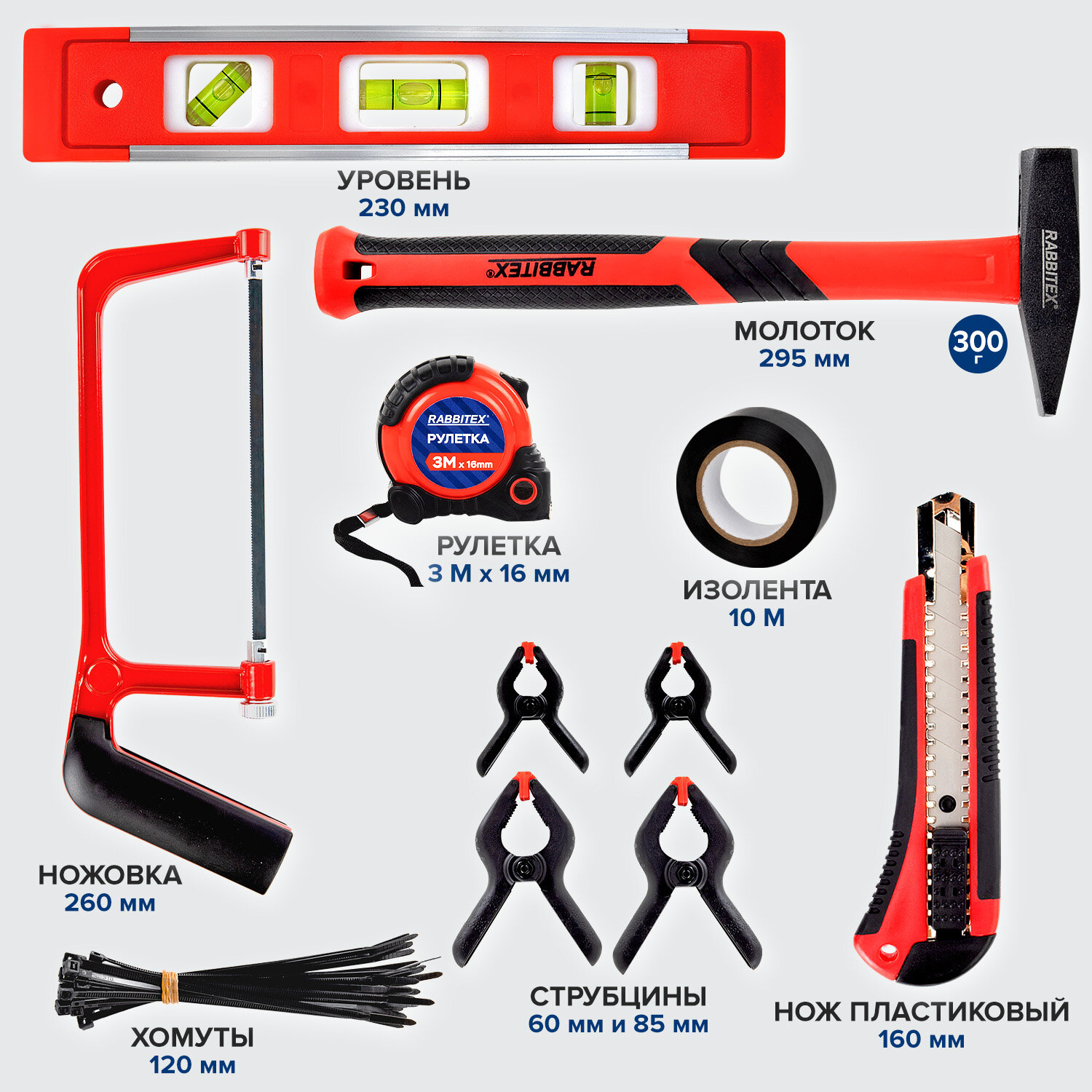 Набор инструментов RABBITEX изготовлен из высококачественной хромованадиевой стали. Рукоятки выполнены из нескользящего пластика с резиновыми вставками для максимального удобства и безопасности во время работы. В состав набора входят инструменты, необходимые в столярно-слесарном деле, для ремонта автомобиля и любой колесной техники, бытовой техники, а также мебели.