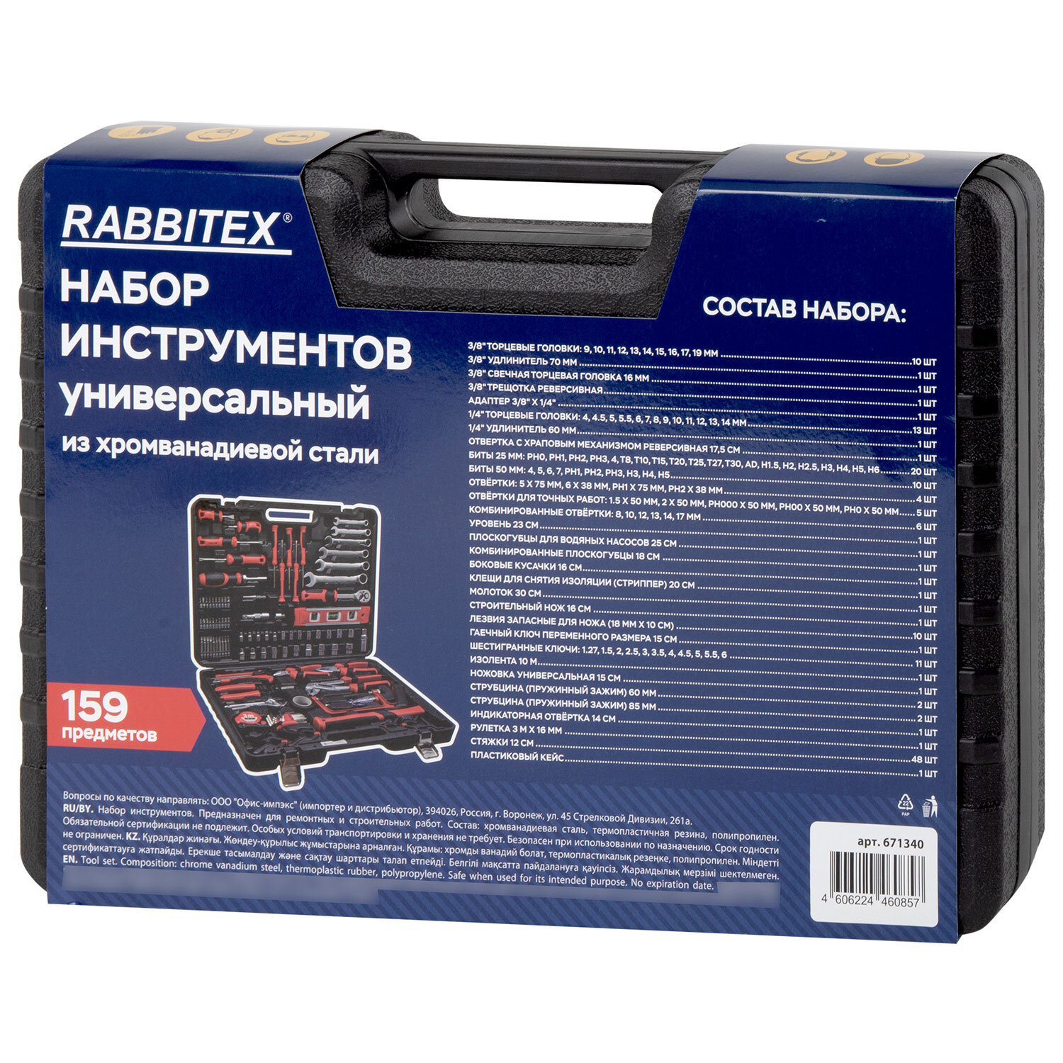 Набор инструментов универсальный, 159 предметов, пластиковый кейс, RABBITEX, 671340