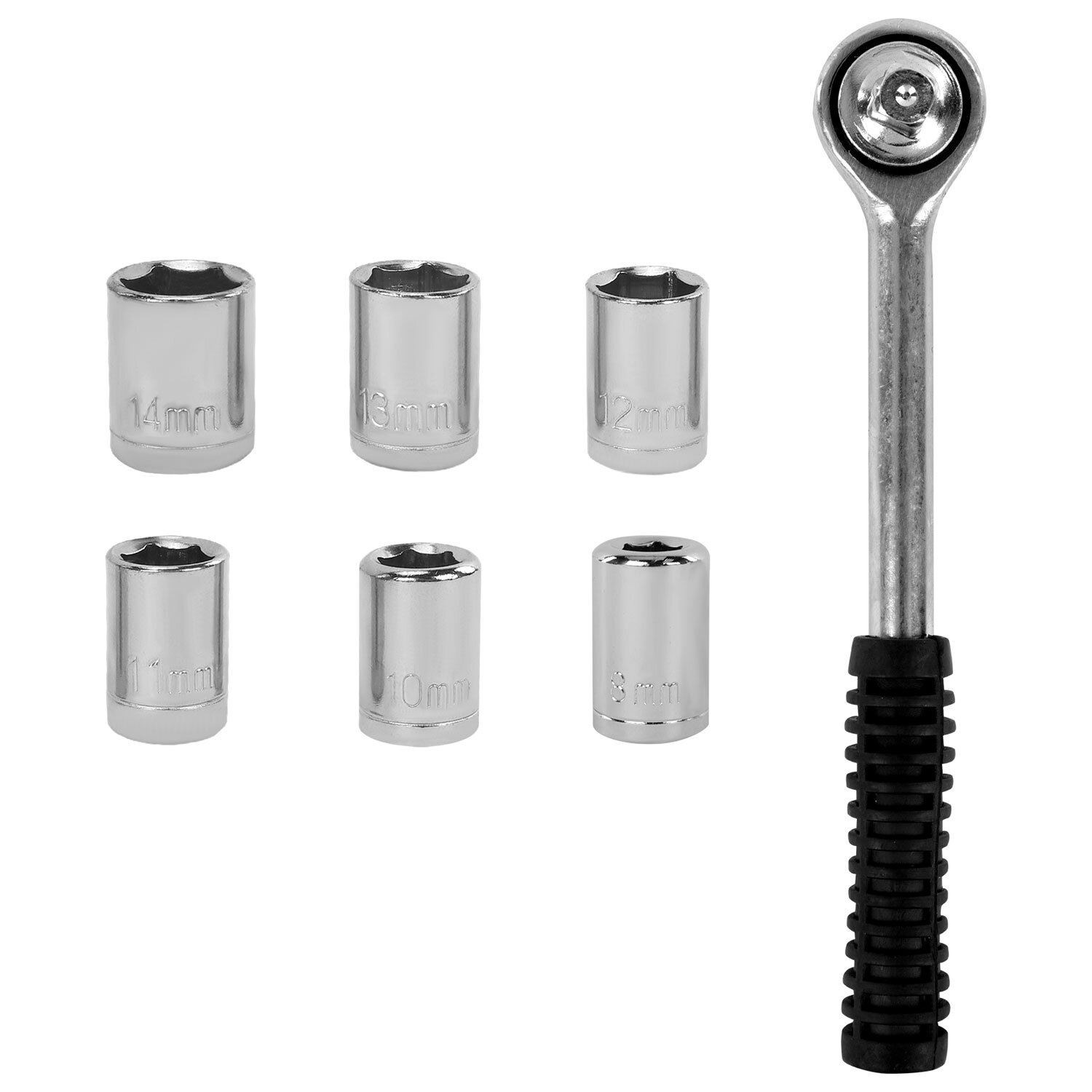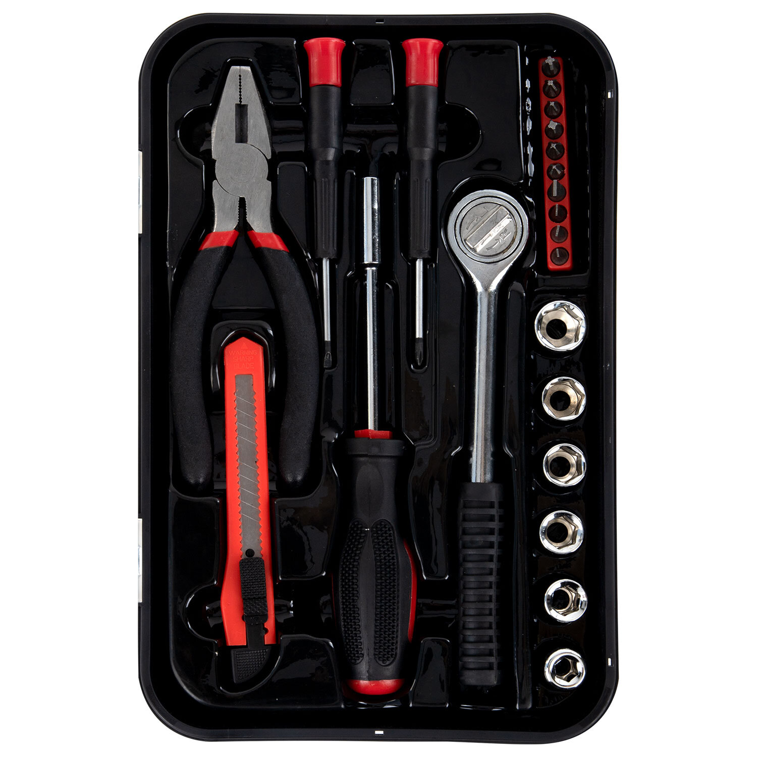 Инструменты изготовлены из закалённой углеродистой стали. Рукоятки выполнены из нескользящего ПВХ для максимального комфорта и безопасности во время использования. Набор предназначен для ремонта бытовых предметов, мебели, а также автомобиля и любой бытовой и колесной техники.