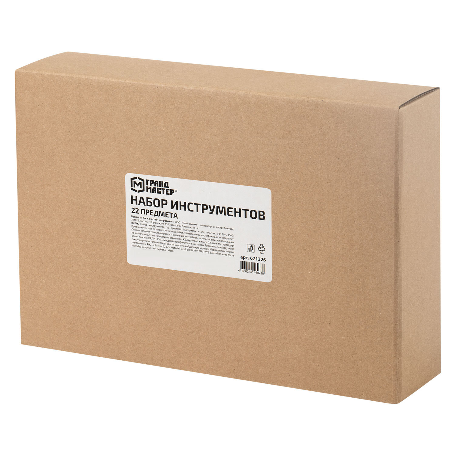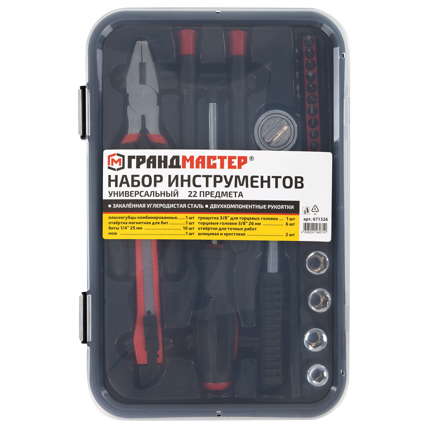 Набор инструментов универсальный, 22 предмета, пластиковый бокс, ГРАНДМАСТЕР, 671326