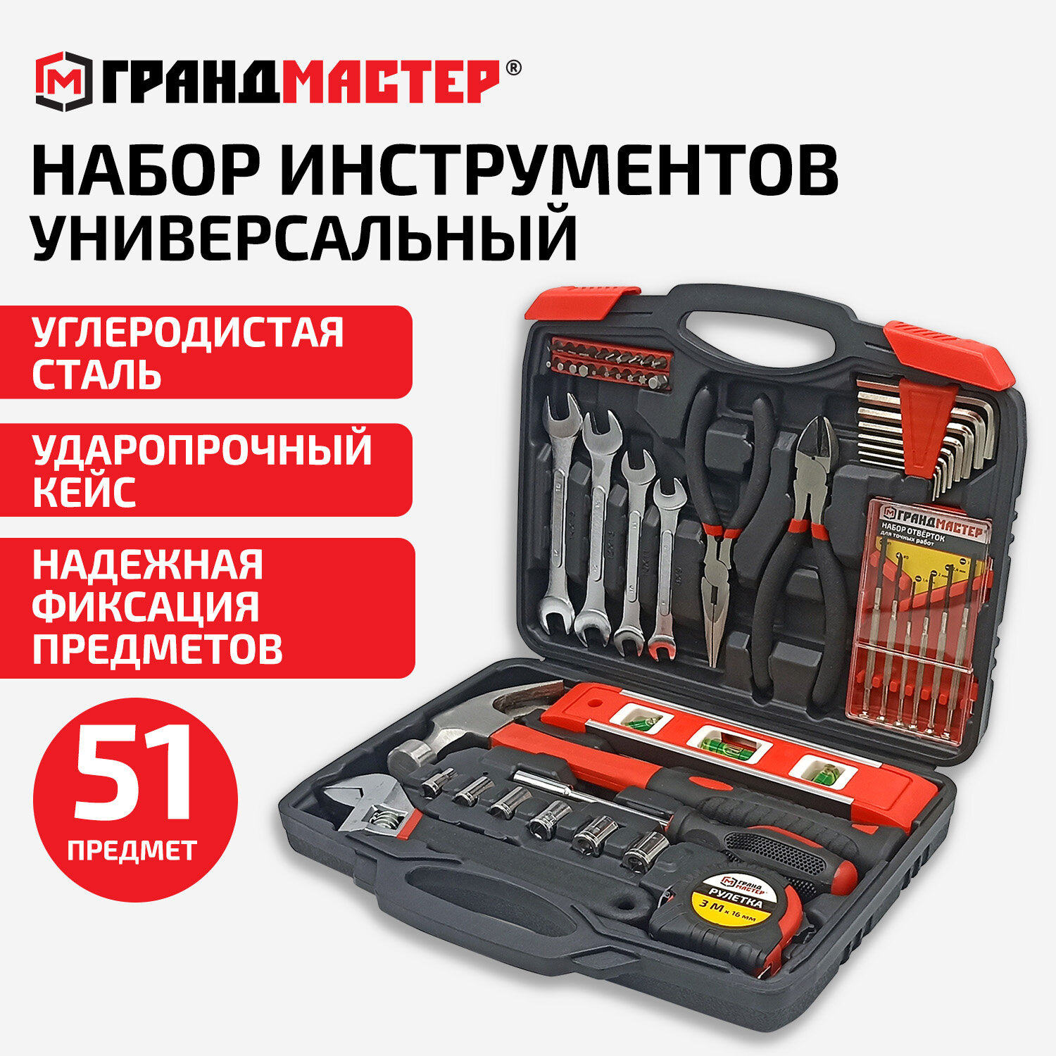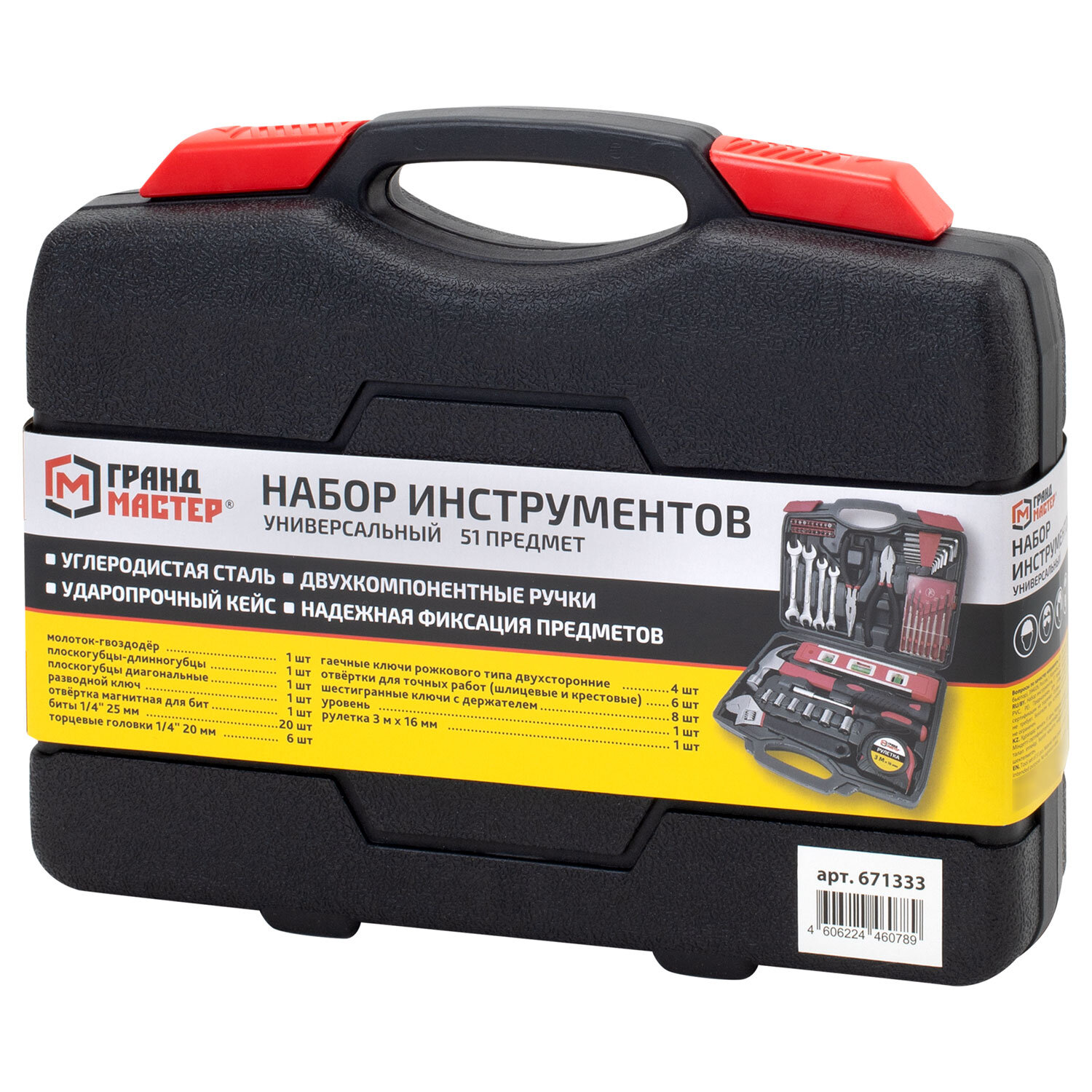Набор инструментов универсальный, 51 предмет, пластиковый кейс, ГРАНДМАСТЕР, 671333