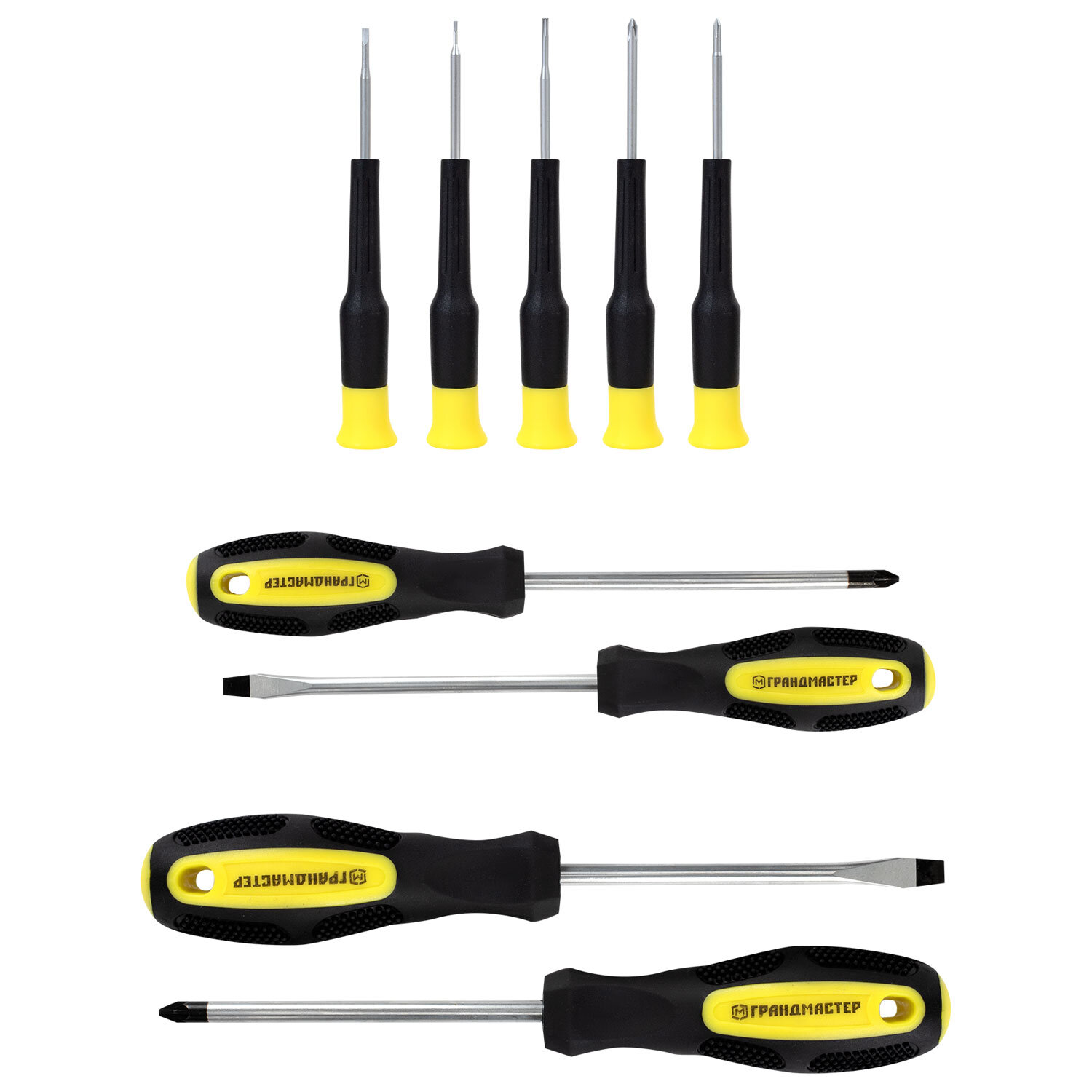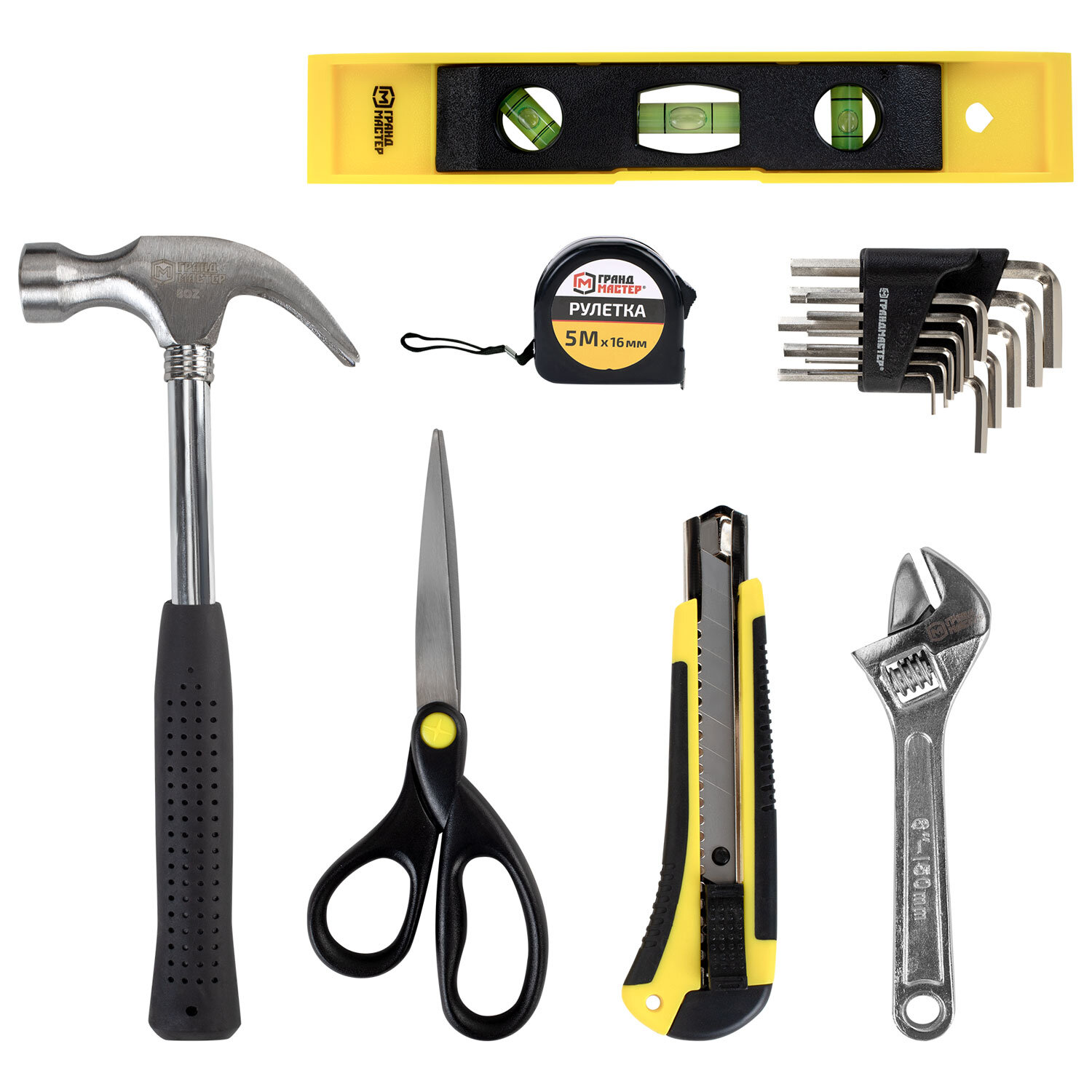 Набор инструментов ГРАНДМАСТЕР изготовлен из высококачественной углеродистой стали. Рукоятки выполнены из нескользящего пластика с резиновыми вставками для максимального удобства и безопасности во время работы. В состав набора входят инструменты, необходимые в столярно-слесарном деле, для ремонта автомобиля и любой колесной техники, бытовой техники, а также мебели.