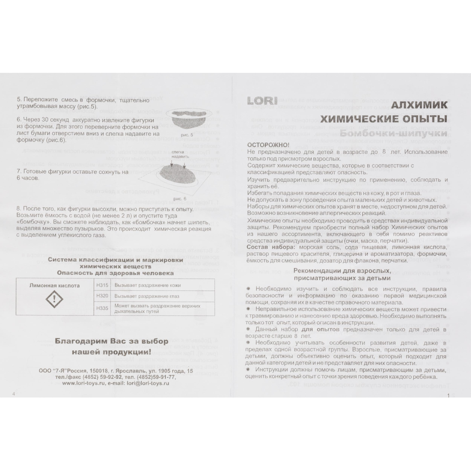 О товаре «Набор химических опытов Lori Бомбочка-шипучка Фруктовое настроение Оп-064»