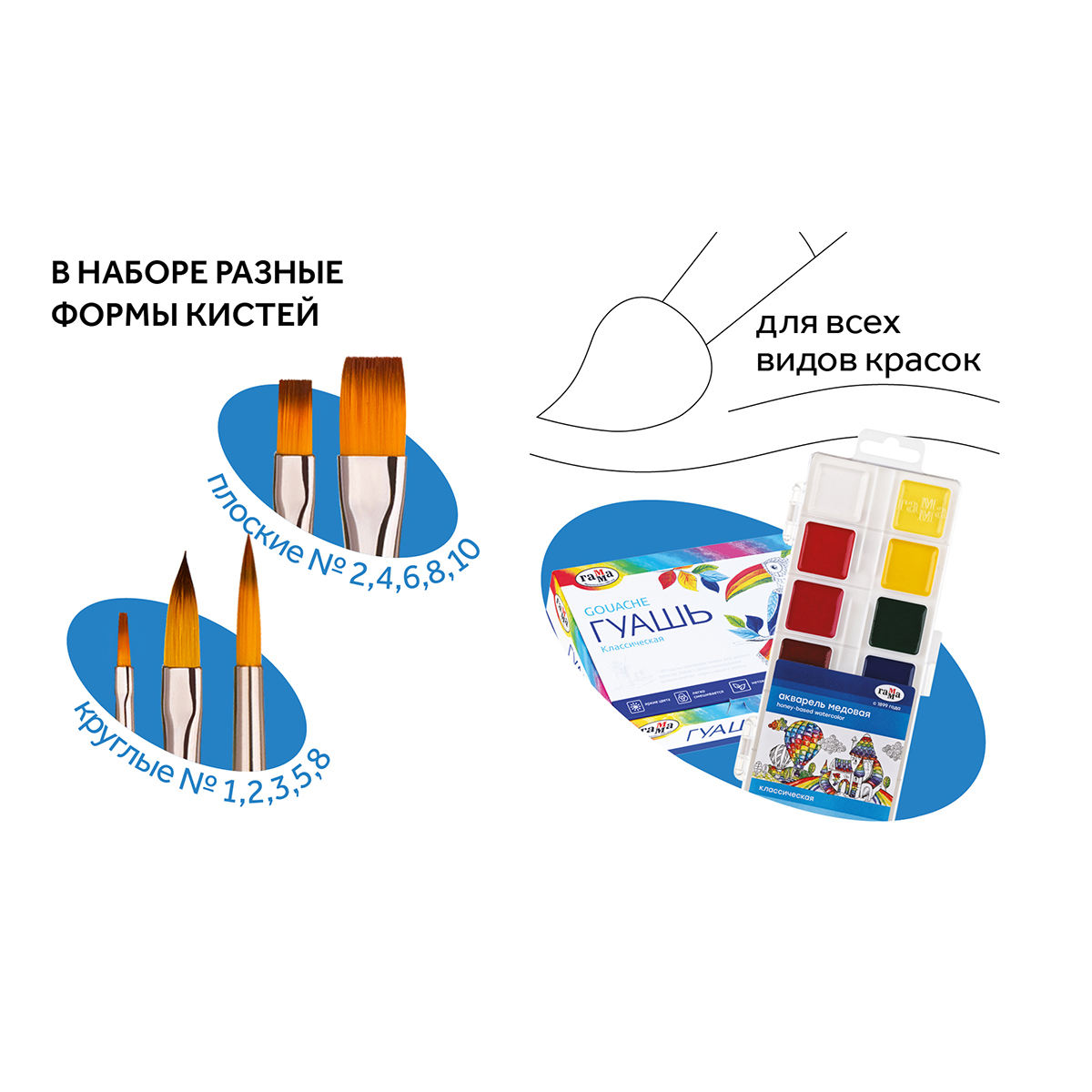 О товаре «Набор кистей Гамма "Классические" 10шт., синтетика, круглые № 1, 2, 3, 5, 8, плоские № 2, 4, 6, 8, 10, блистер, европодвес»
