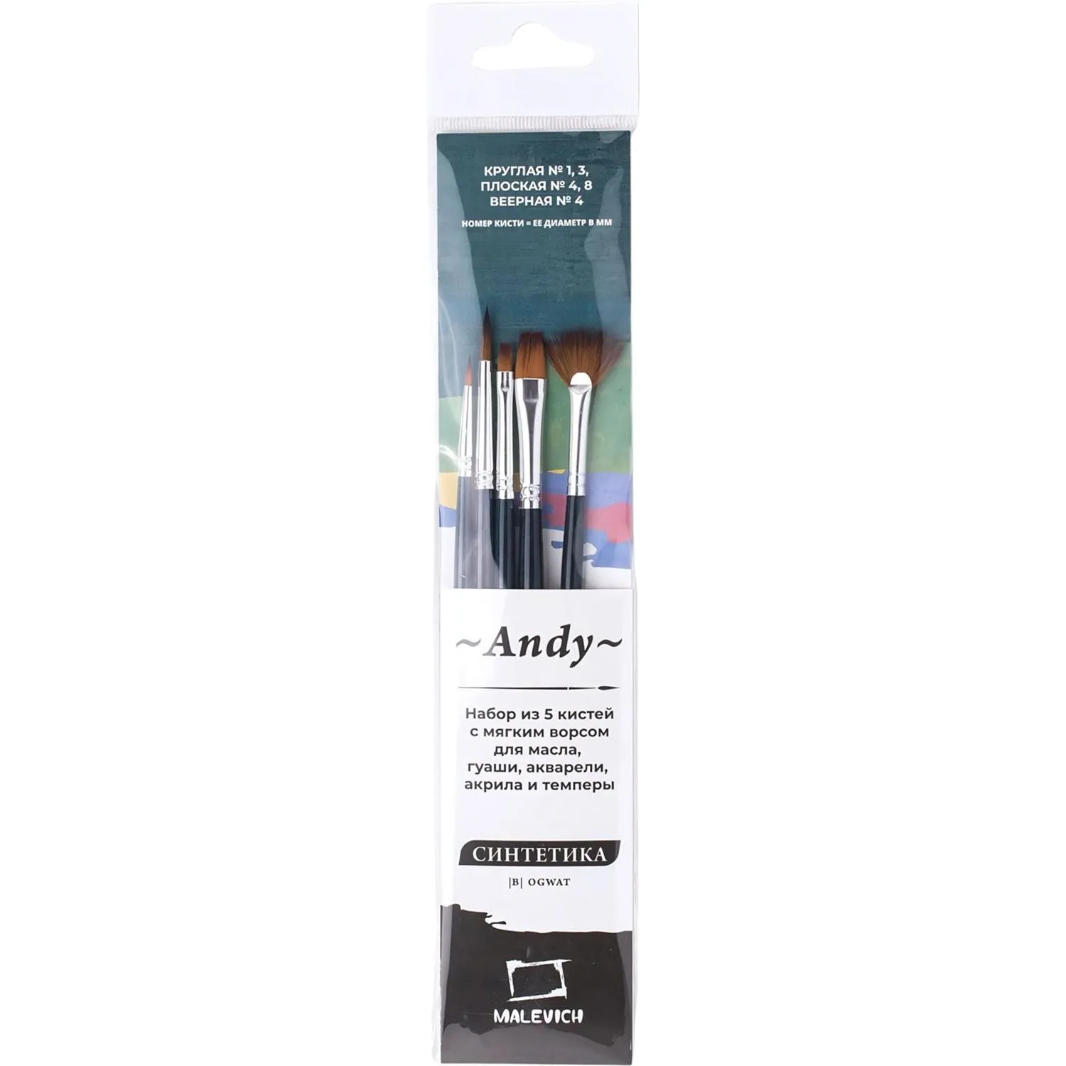 О товаре «Набор кистей Малевичъ Andy синтетика (5 штук в наборе)»