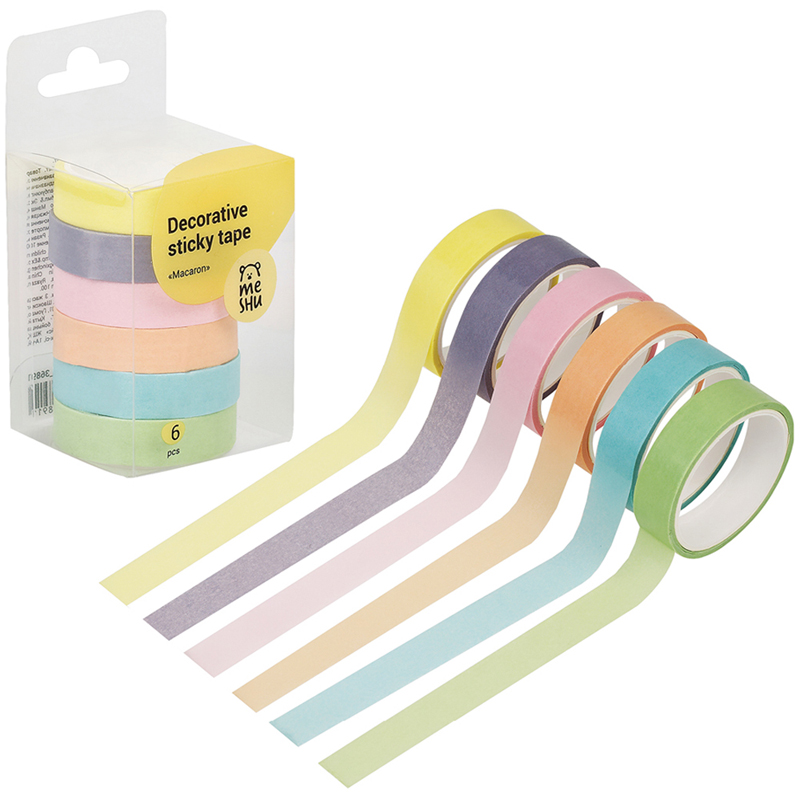 О товаре «Клейкая лента канцелярская Meshu Macaron декоративная 15 мм х 3 м (6 штук в упаковке)»