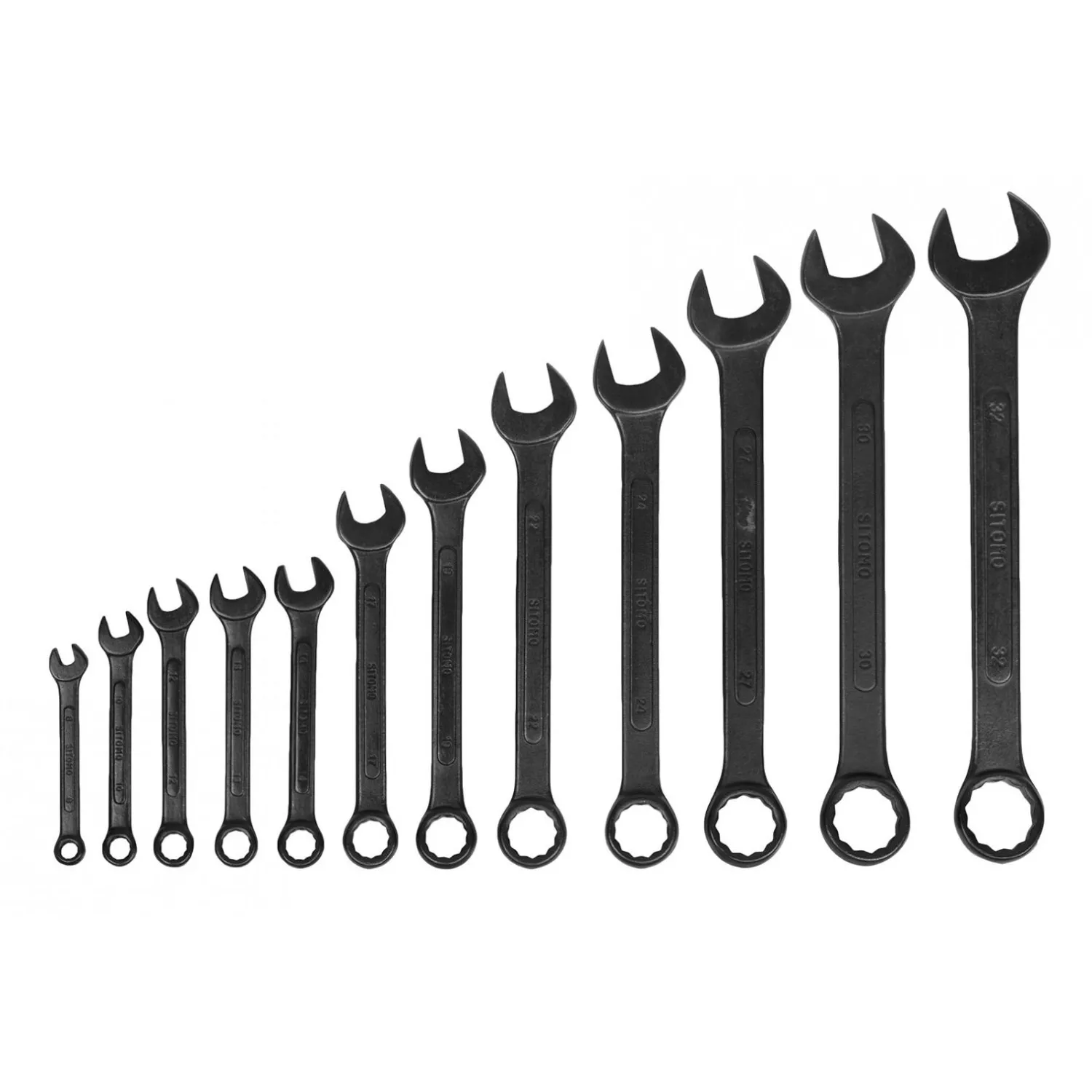 Набор двусторонних комбинированных ключей Sitomo из стали 45 с оксидированным покрытием.
