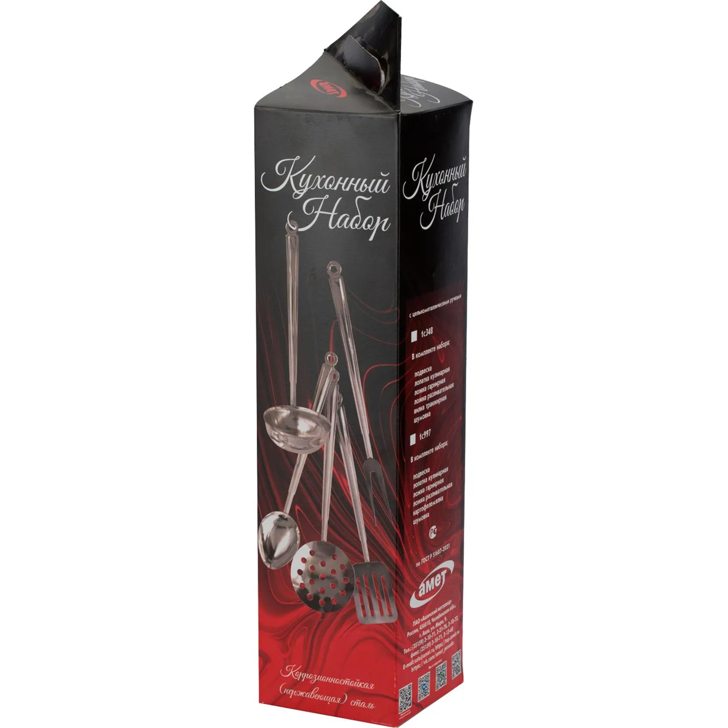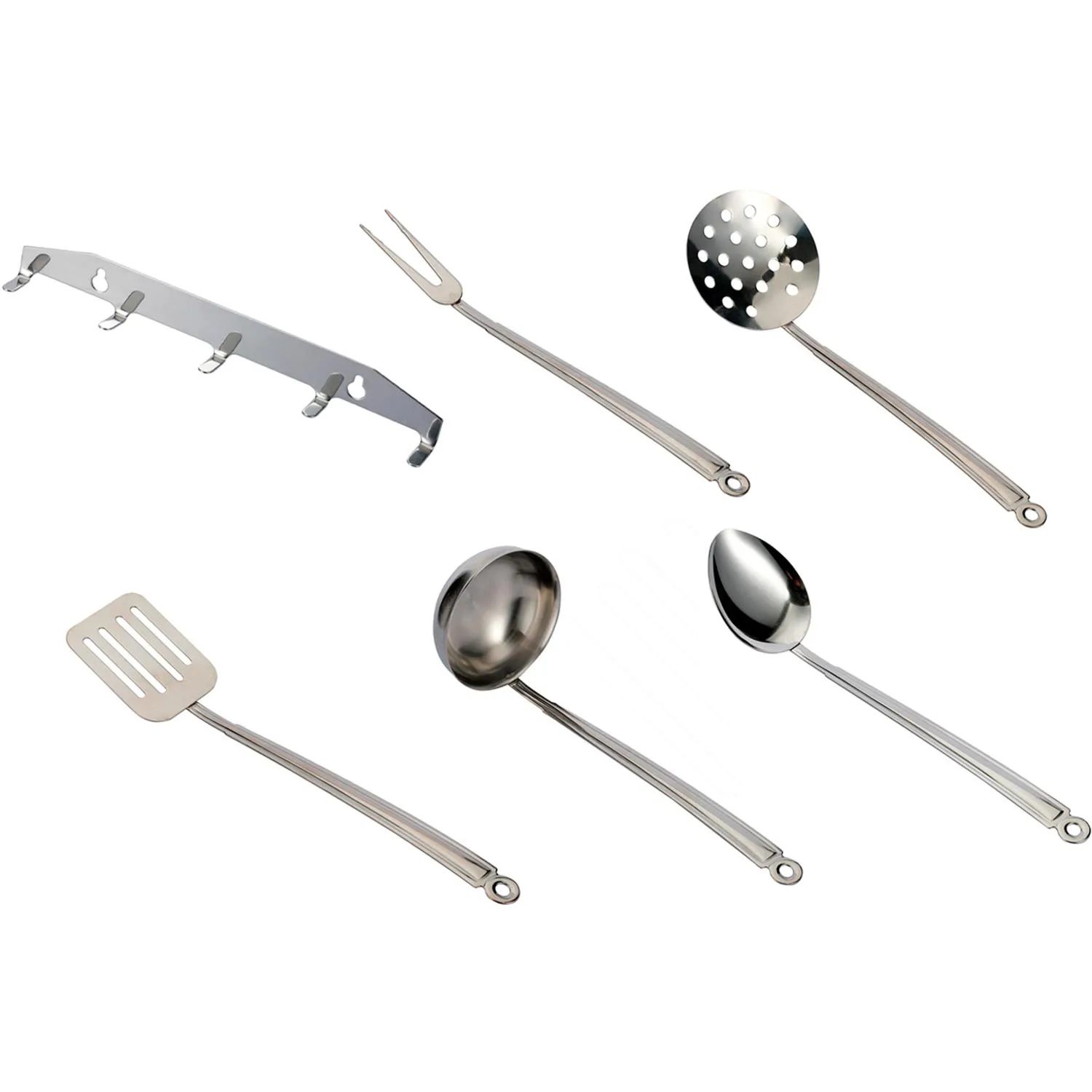 Набор кухонных принадлежностей Amet Home, состоящий из 5 предметов и подвеса, необходим на любой кухне. В него включены самые нужные приборы для готовки и подачи блюд: