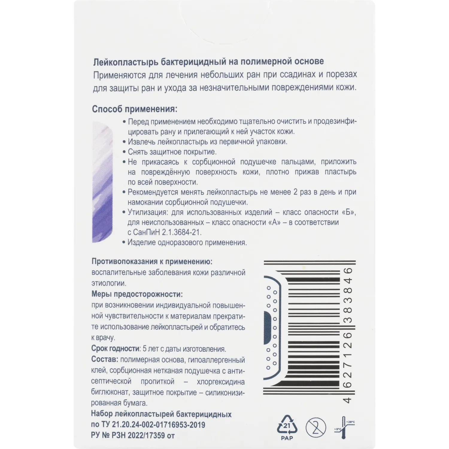 Набор лейкопластырей АРМА «Универсальный Skin». В составе: лейкопластырь бактерицидный на полимерной основе (размеры, мм): 19 мм х 38 мм — 2 шт, 19 мм х 72 мм — 8 шт, 25 мм х 72 мм — 6 шт, 38 мм х 38 мм — 4 шт. Цвет- телесный (бежевый). Лейкопластырь представляет собой комбинированное изделие прямоугольной или фигурной формы различных размеров, включающее фиксирующую часть. Предназначен для лечения небольших ран при ссадинах и порезах для защиты ран и ухода за незначительными повреждениями кожи. Антисептическая пропитка уничтожает болезнетворные бактерии. Гипоаллергенное адгезионное покрытие из синтетического каучука обеспечивает надежную фиксацию на коже и не раздражает ее. Пластырь повторяет изгибы тела, не стесняет движений, почти незаметен на коже. Благодаря наличию микроотверстий рана дышит, что способствует скорейшему заживлению. Абсорбирующая подушечка из нетканого материала не прилипает к ранке. Стрипы снимаются без боли и не оставляют следов.