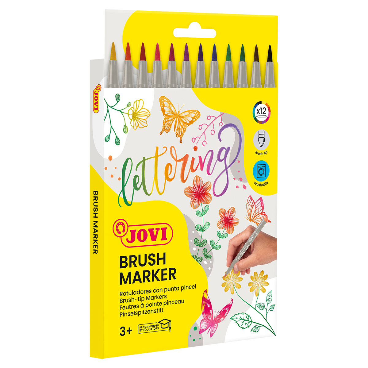 Набор маркеров-кистей JOVI "Lettering", 12цв., на водной основе, кисть/пулевидный