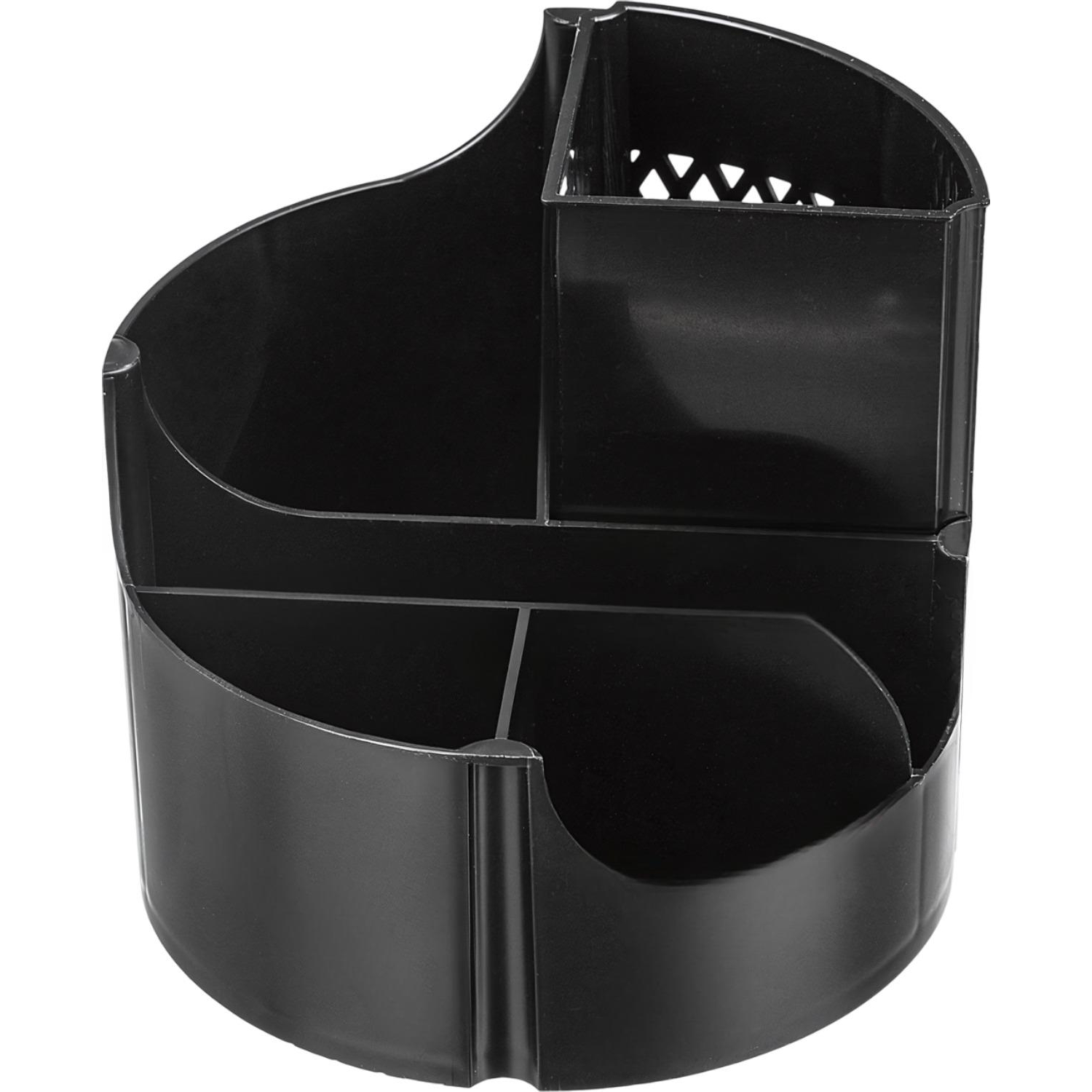 Отличное решение для рабочего стола. Подставка занимает минимум места и вмещает в себя все нужны канцелярские мелочи для работы. Имеет вращающуюся на 360 градусов основу.