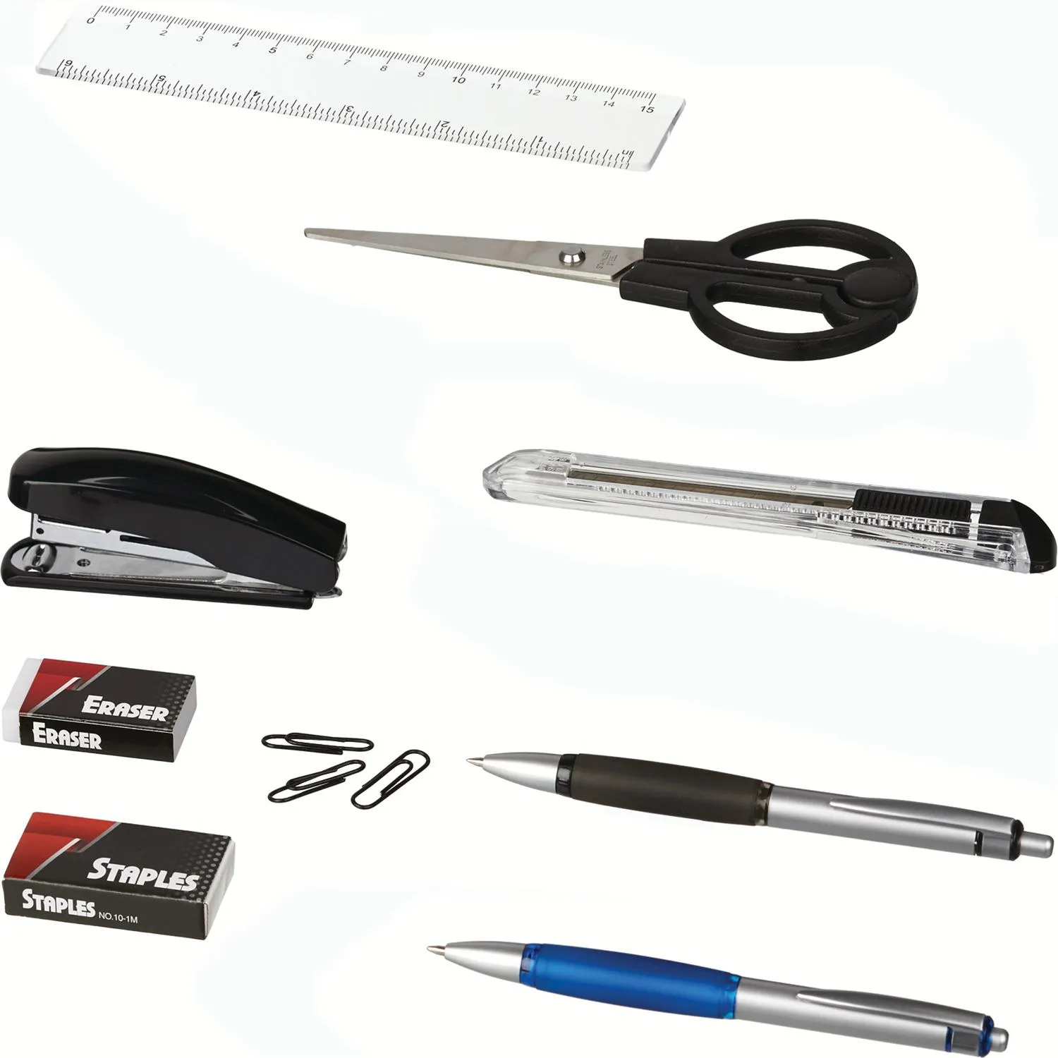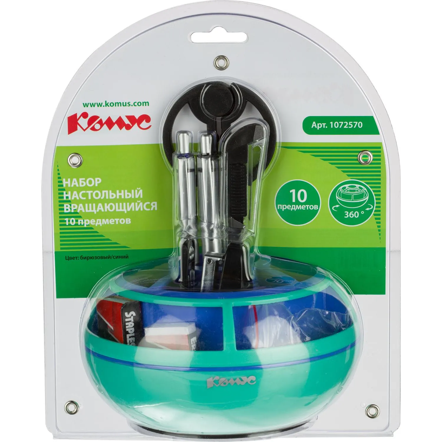 О товаре «Набор канцелярский Комус пластиковый 10 предметов бирюзово-синий вращающийся»