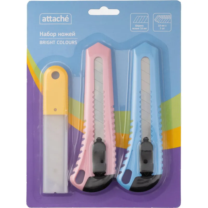 Набор ножей универсальных Attache 18 мм (5 сменных лезвий, 2 штуки в упаковке, SX36-3pcs)