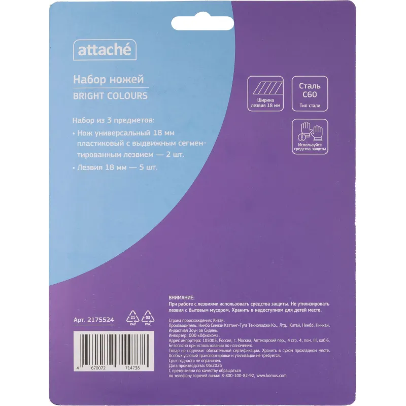 О товаре «Набор ножей Attache 2 ножа 18 мм, 5 запас. лезвиями»