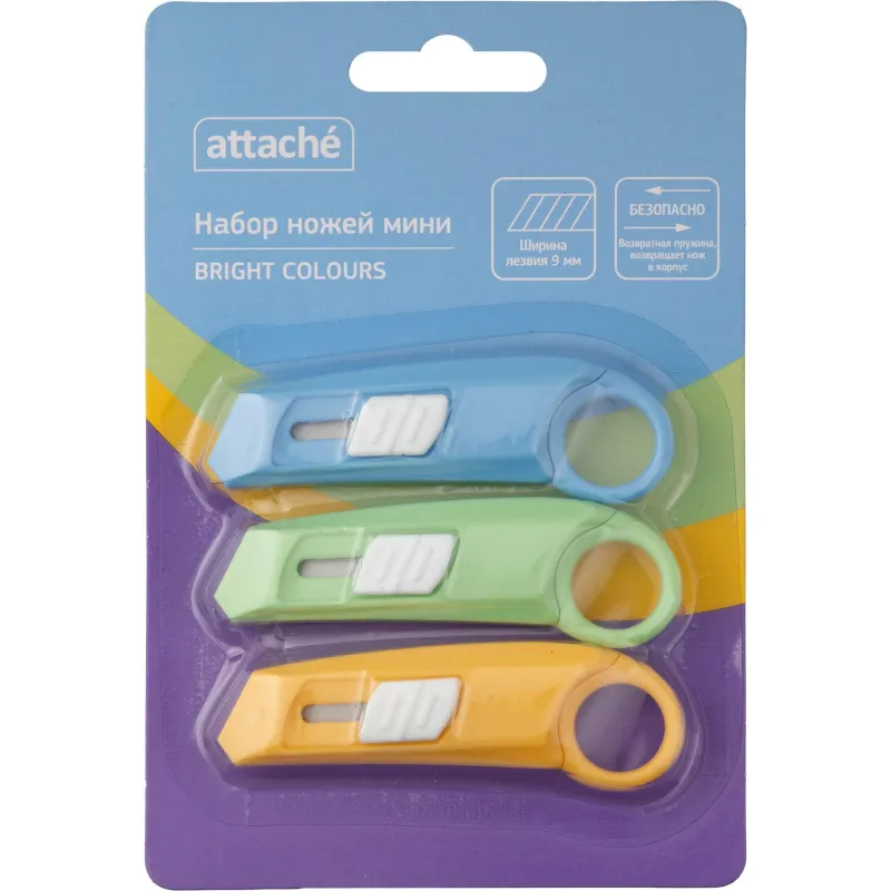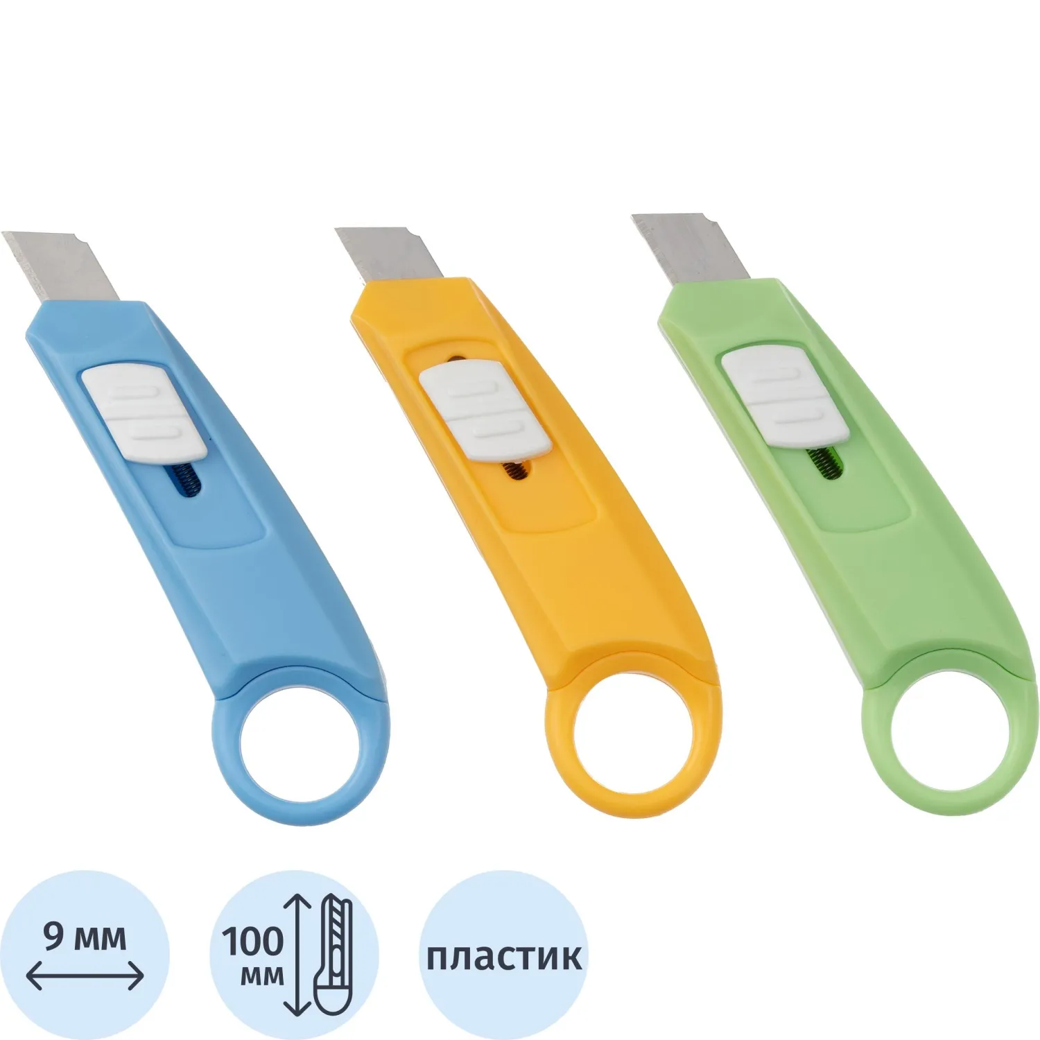 Набор ножей универсальных безопасных мини Attache 9 мм (3 штуки в упаковке, SX18-8X3)