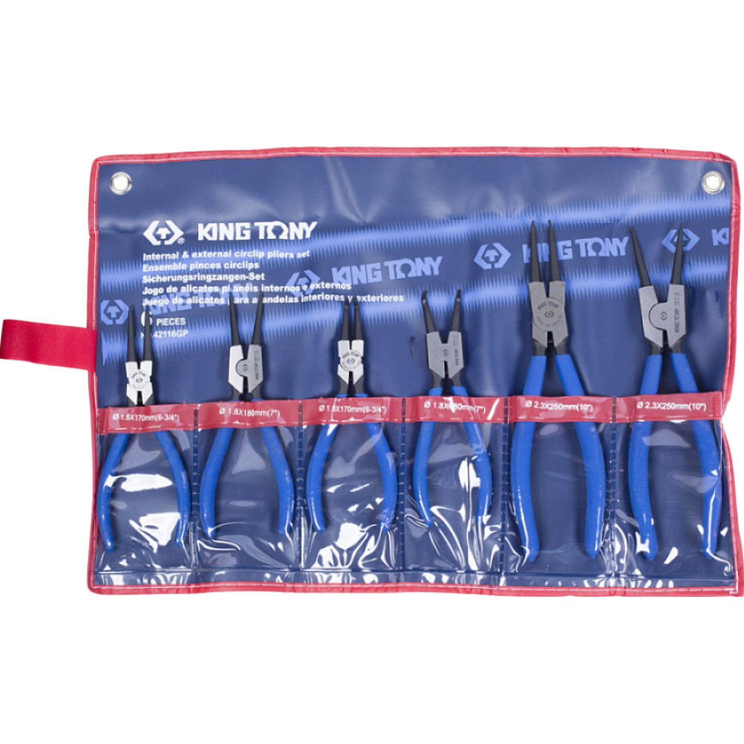 Набор съемников стопорных колец King Tony 6 предметов 42116GP — это многофункциональный комплект для ремонта автомобиля. В комплекте 6 инструментов с прямыми и изогнутыми наконечниками для снятия внешних и внутренних стопорных колец. Изделия убираются в чехол для компактного хранения и удобной транспортировки.