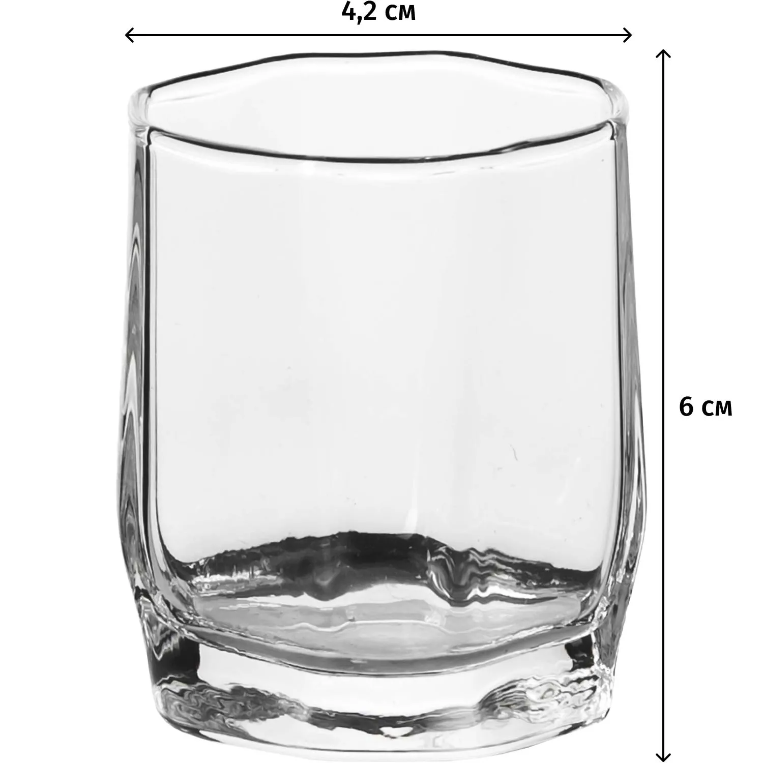 Объём каждого стакана — 55 мл, что делает их удобными для дегустации ликёров, подачи текилы, настоек или небольших коктейлей. Классическая форма придаёт посуде универсальность и подходит для домашней и праздничной сервировки.