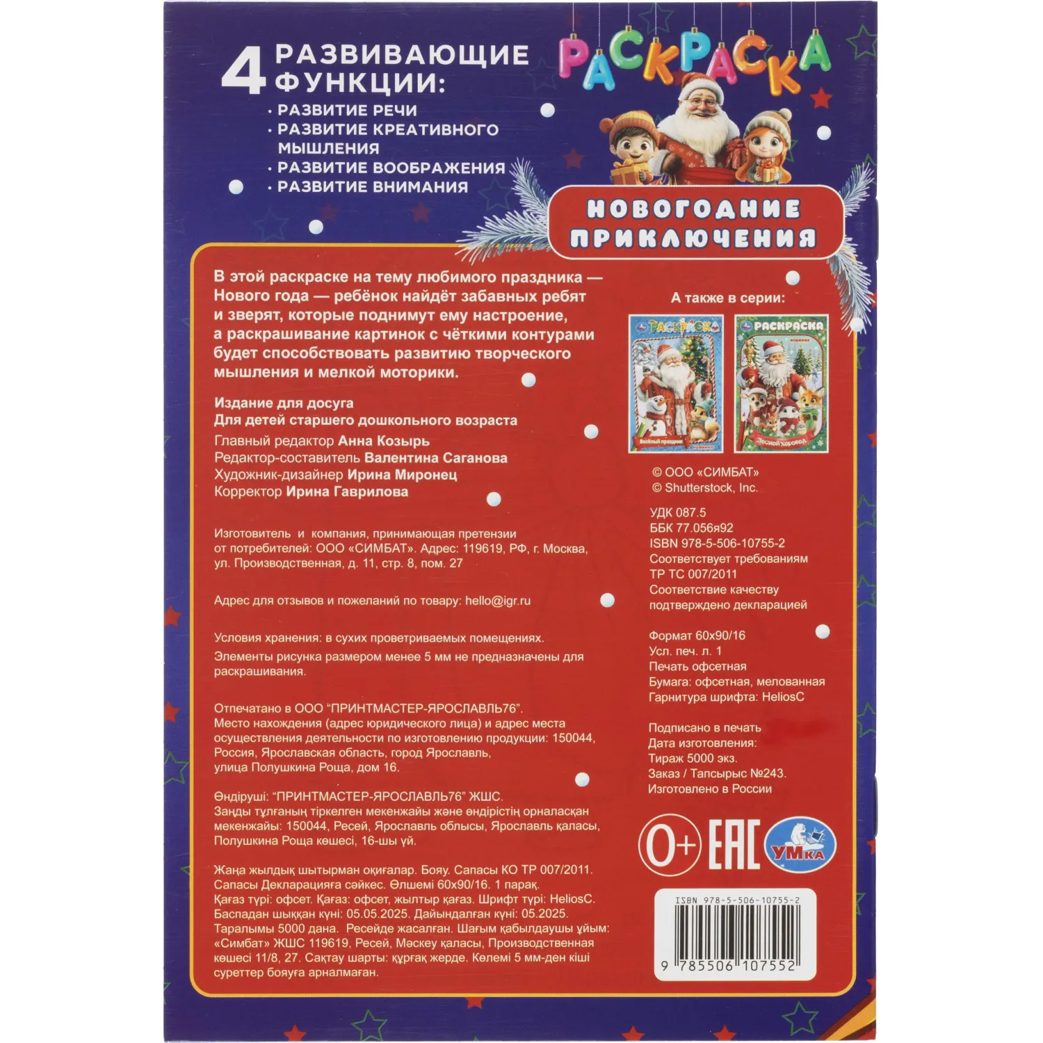 — раскраска «Новогодние приключения» (объём: 16 стр., формат: 145×210 мм)