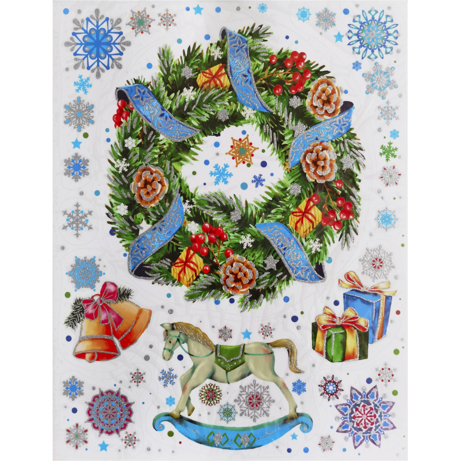 Наклейка новогодняя на окна Magic Time Новогодний венок 38×30 см