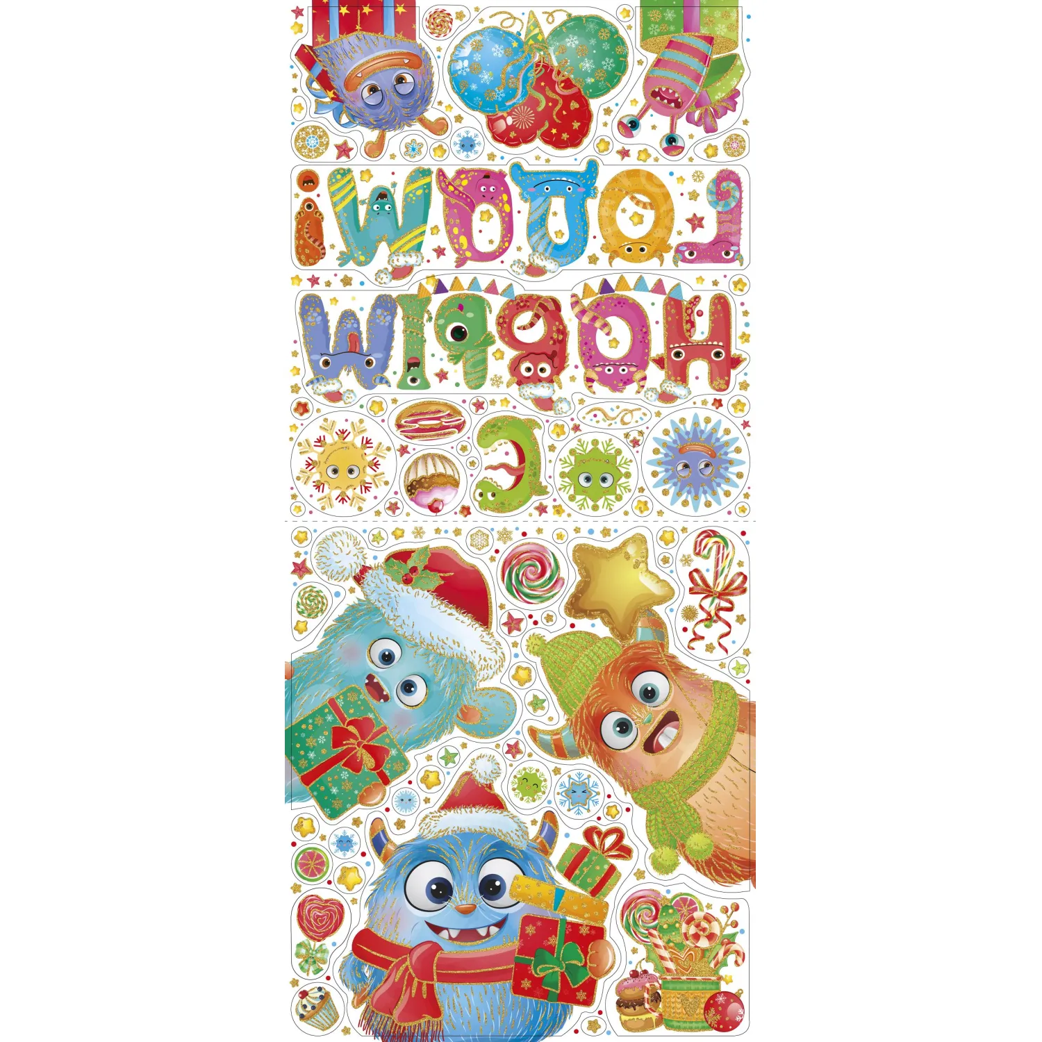 Элементы изготовлены из ПВХ с непрозрачной поверхностью и отделаны глиттером, придающим блеск. В наборе предусмотрена возможность раскрашивания, что делает использование особенно интересным для детей. Лист размером 84×38 см содержит 60 наклеек. Их можно использовать многократно, но применять только внутри помещений.
