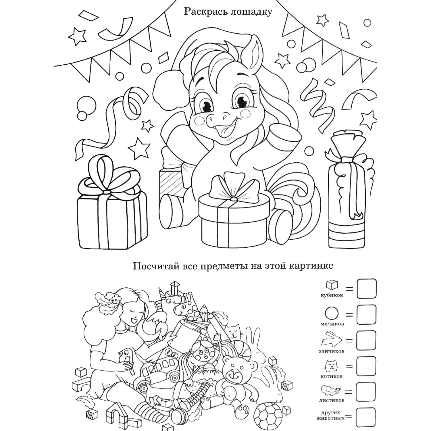Наклейка НГ оконное украшение с раскраской Милая лошадка, 30х40см НН-3119