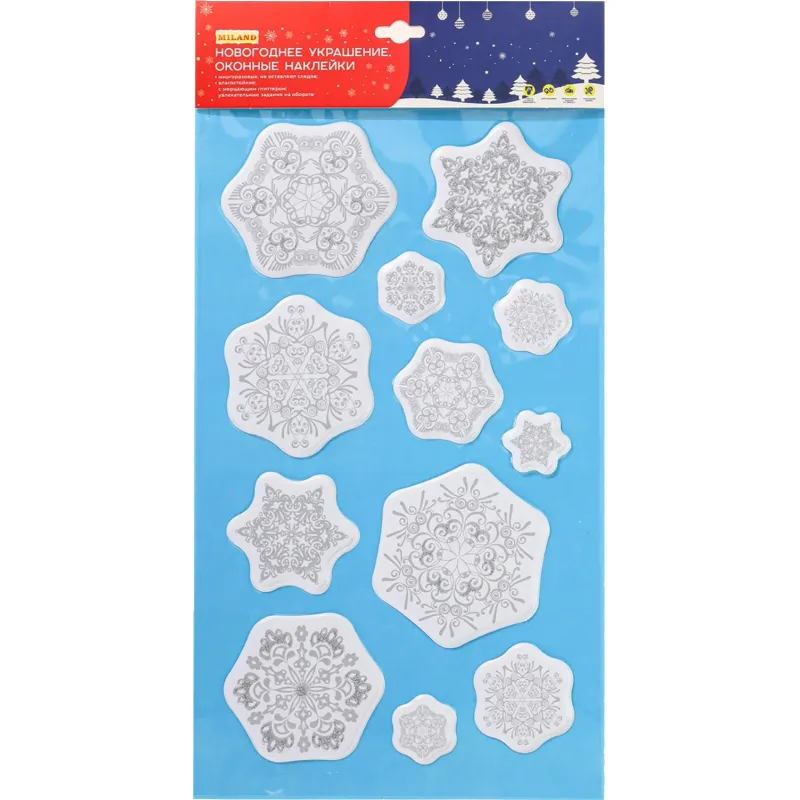 О товаре «Наклейка новогодняя на окна Miland Ледяные узоры 25x14.4 см»