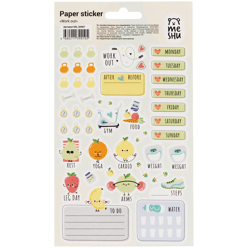 О товаре «Наклейки бумажные для ежедневников MESHU "Work out", 12*21см, 45 наклеек, европодвес»