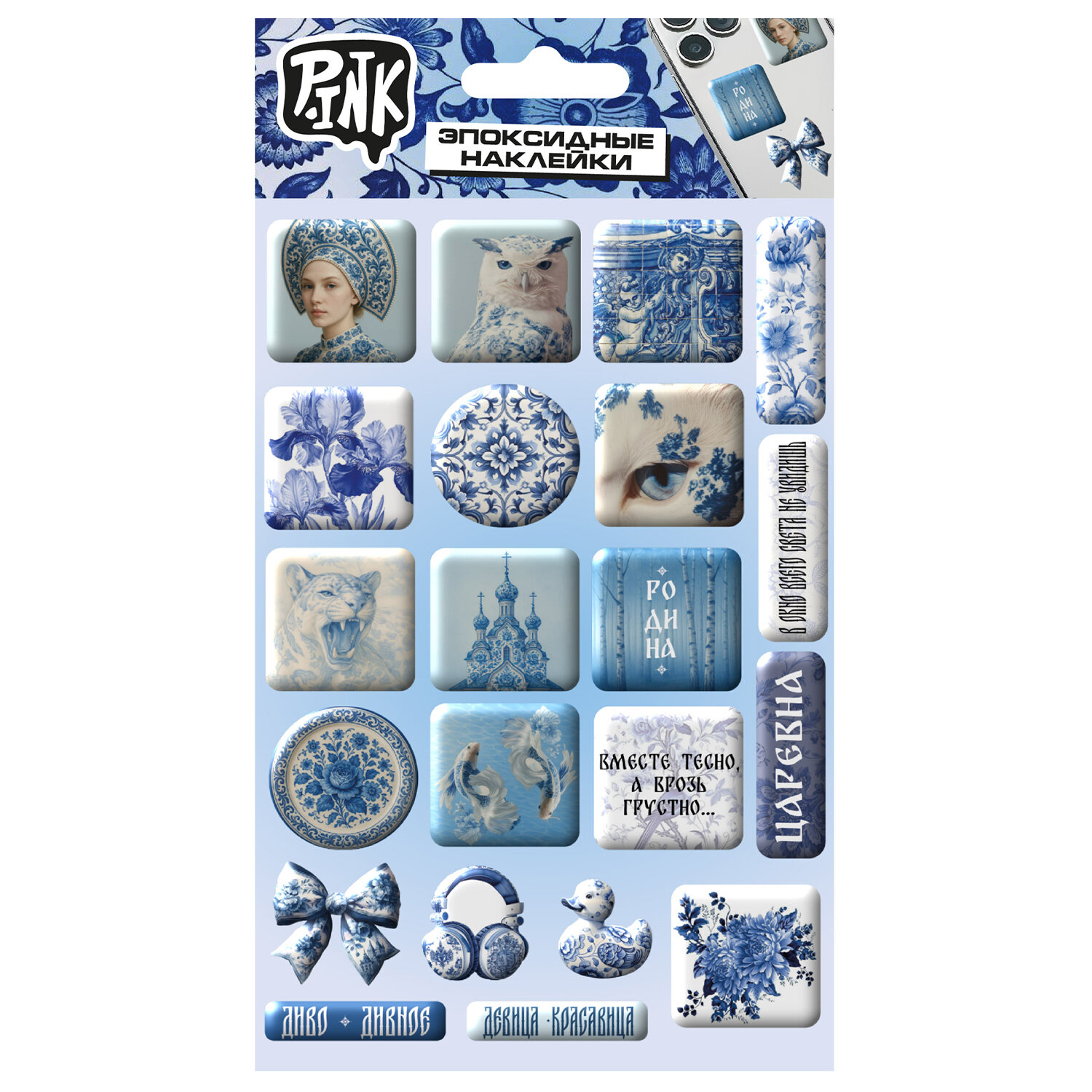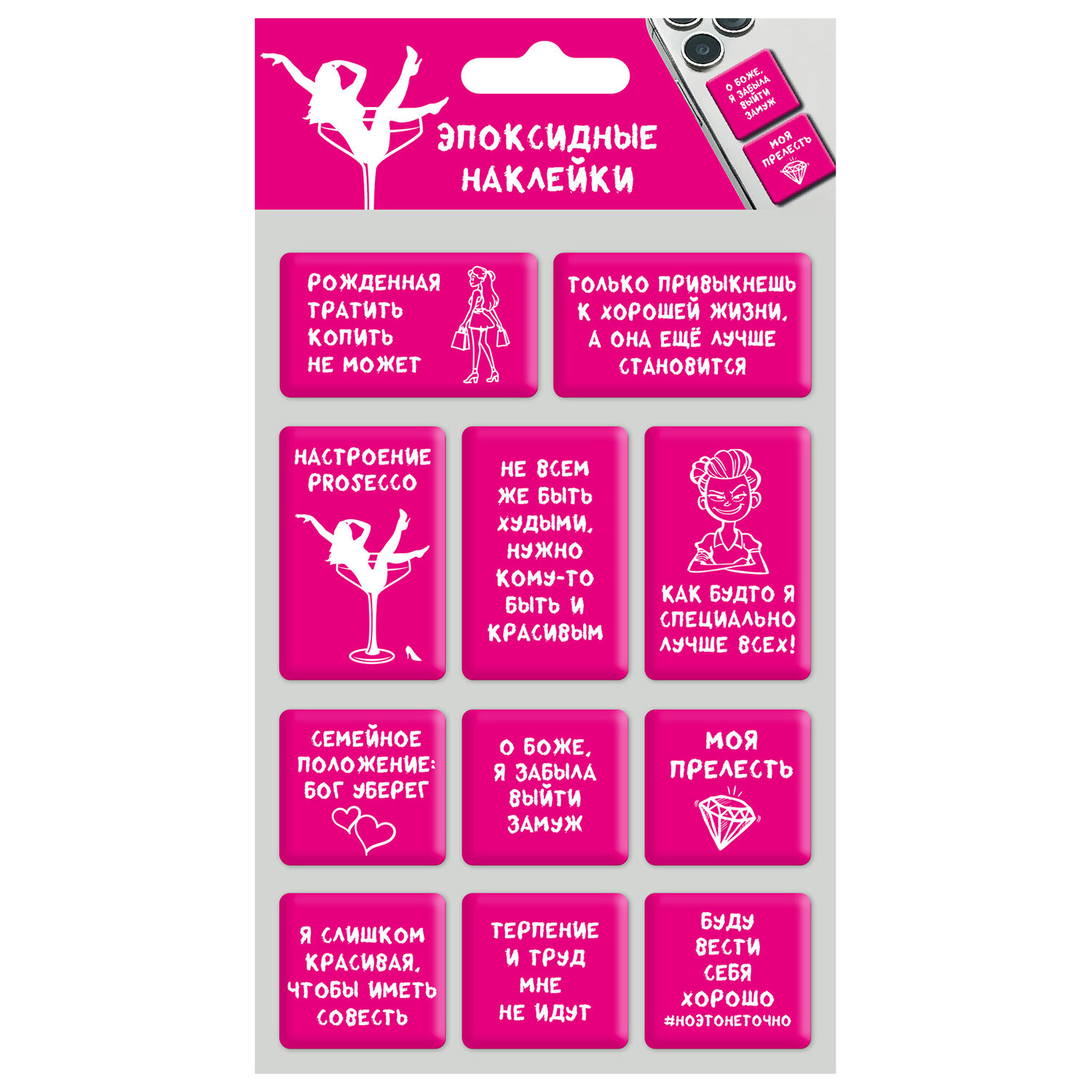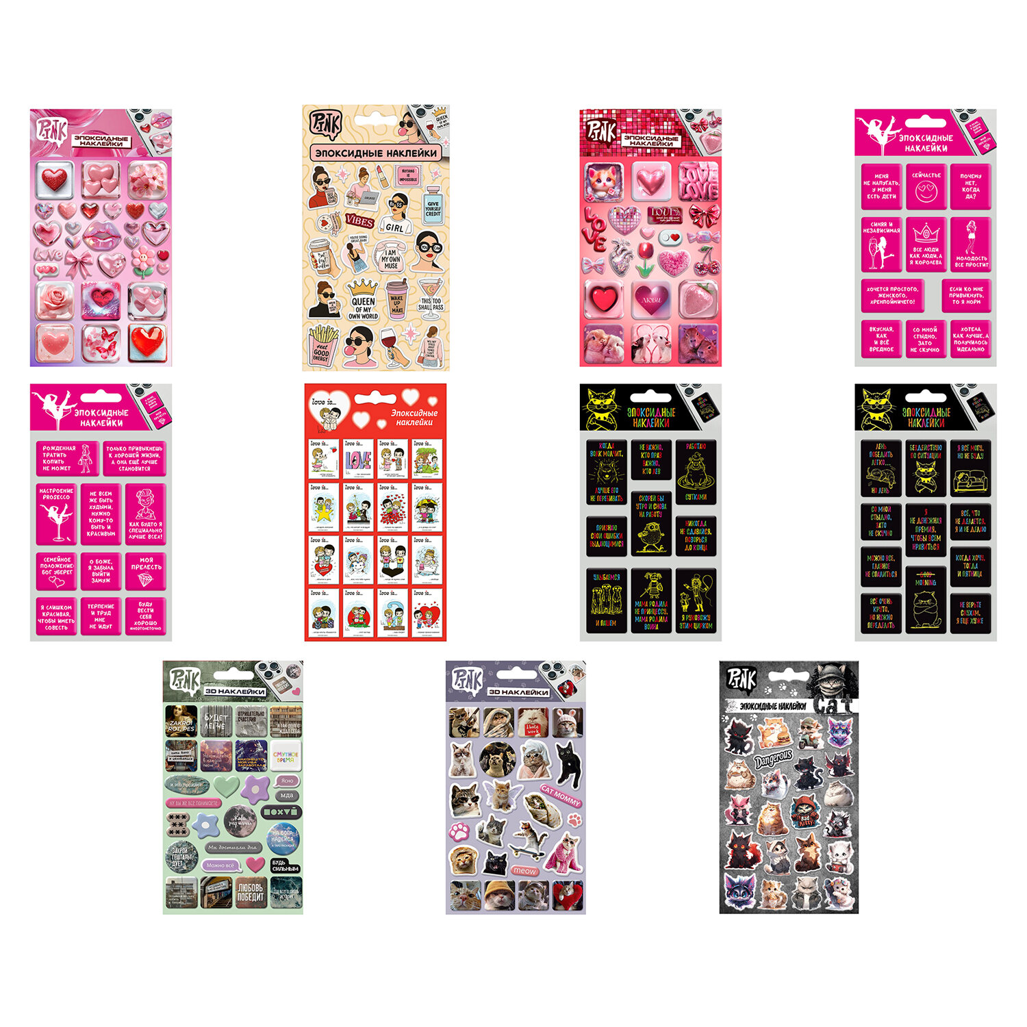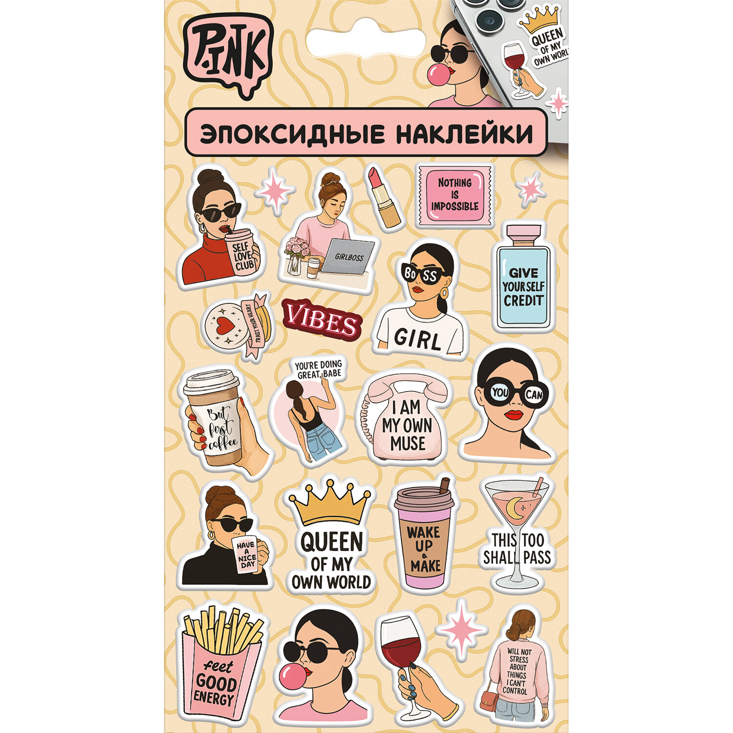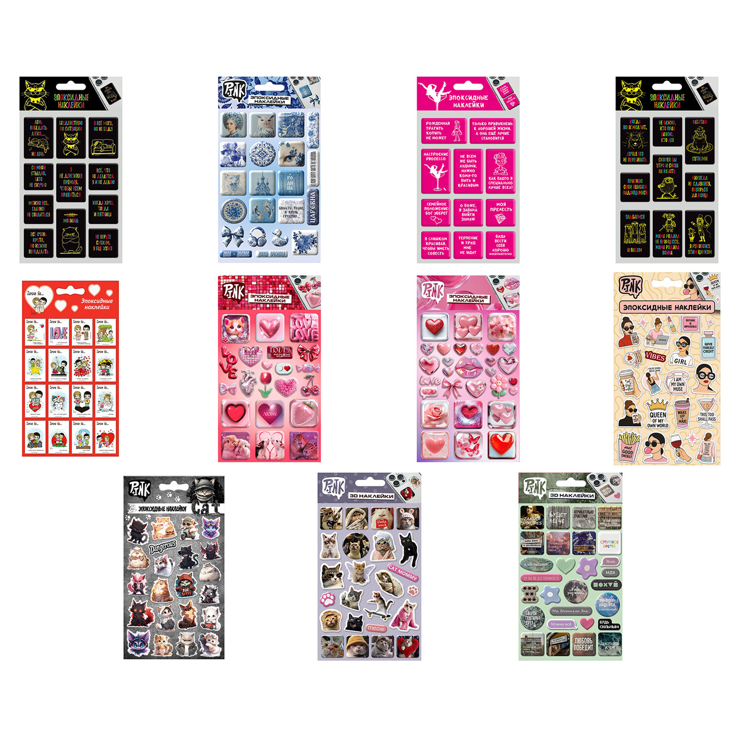 Наклейки эпоксидные АССОРТИ, 11х20 см, PINK