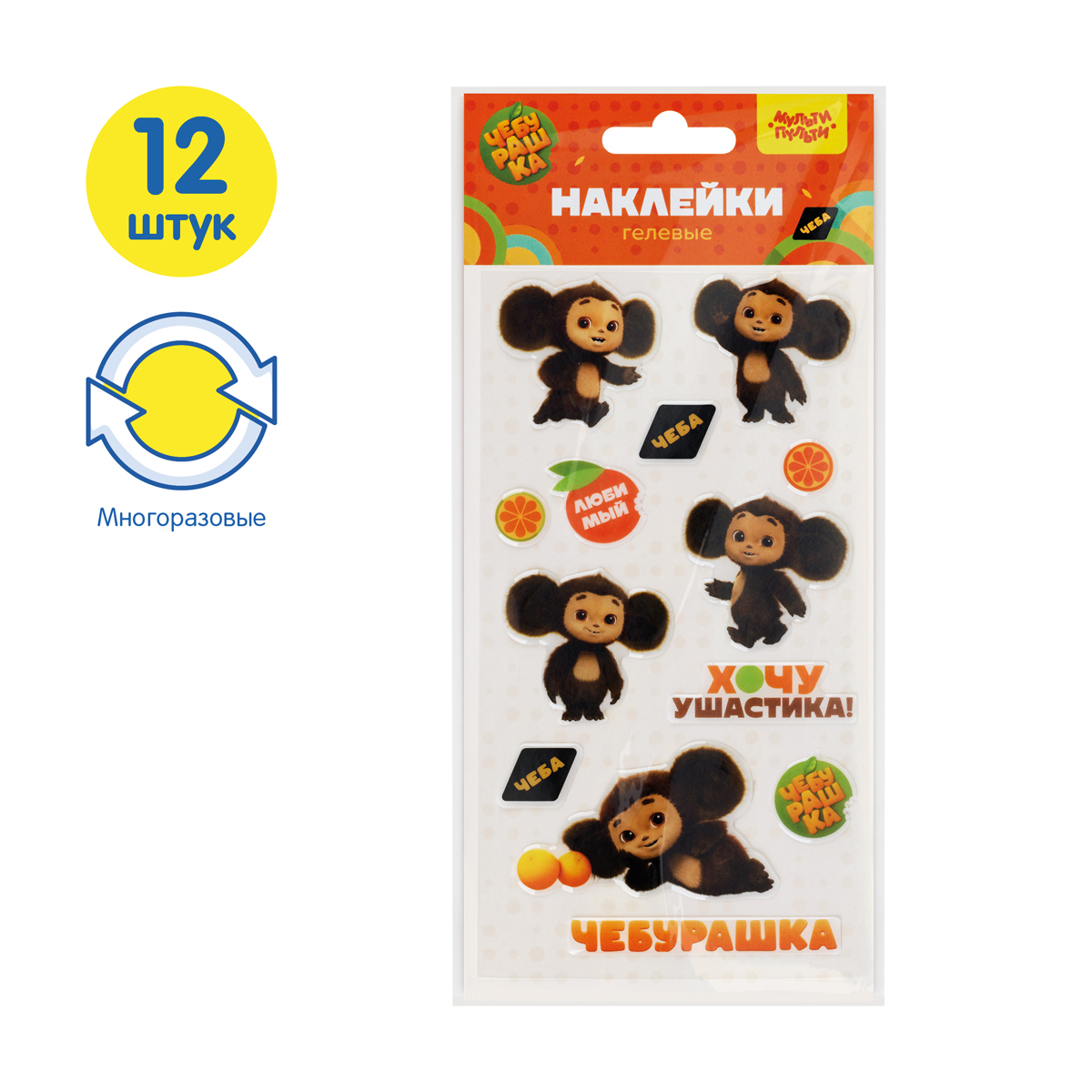 Наклейки гелевые Мульти-Пульти "Чеба", 12 наклеек