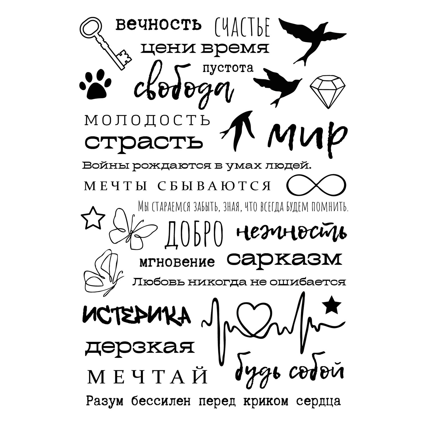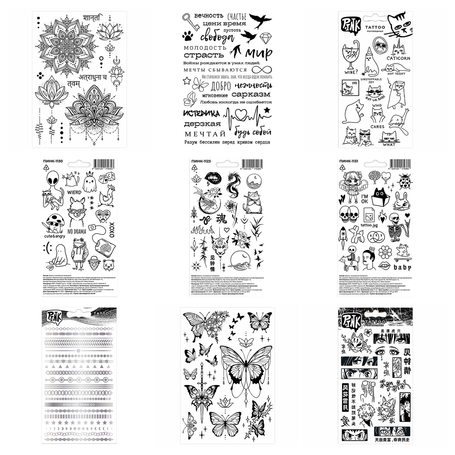 О товаре «Наклейки-тату переводные АССОРТИ, Ч/Б, 11х20 см, PRIORITY»