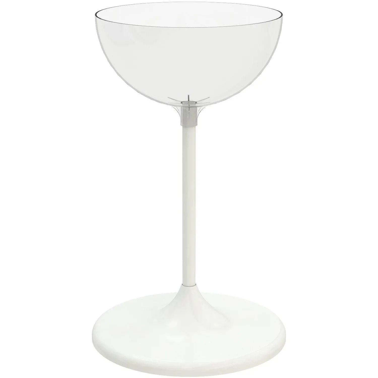 Накопитель для торгового зала обладает большим объемом чаши. Больший объем чаши позволяет увеличить размеры выкладки товара или организовать выкладку товаров средних размеров. Состоит из прозрачной пластиковой чаши объемом 24 литров. Металлические опорные «ноги» и устойчивого пластикового основания. Чаша для выкладки является цельнолитой, что гарантирует ее долгую эксплуатацию. Цвет основания и труб — белый.