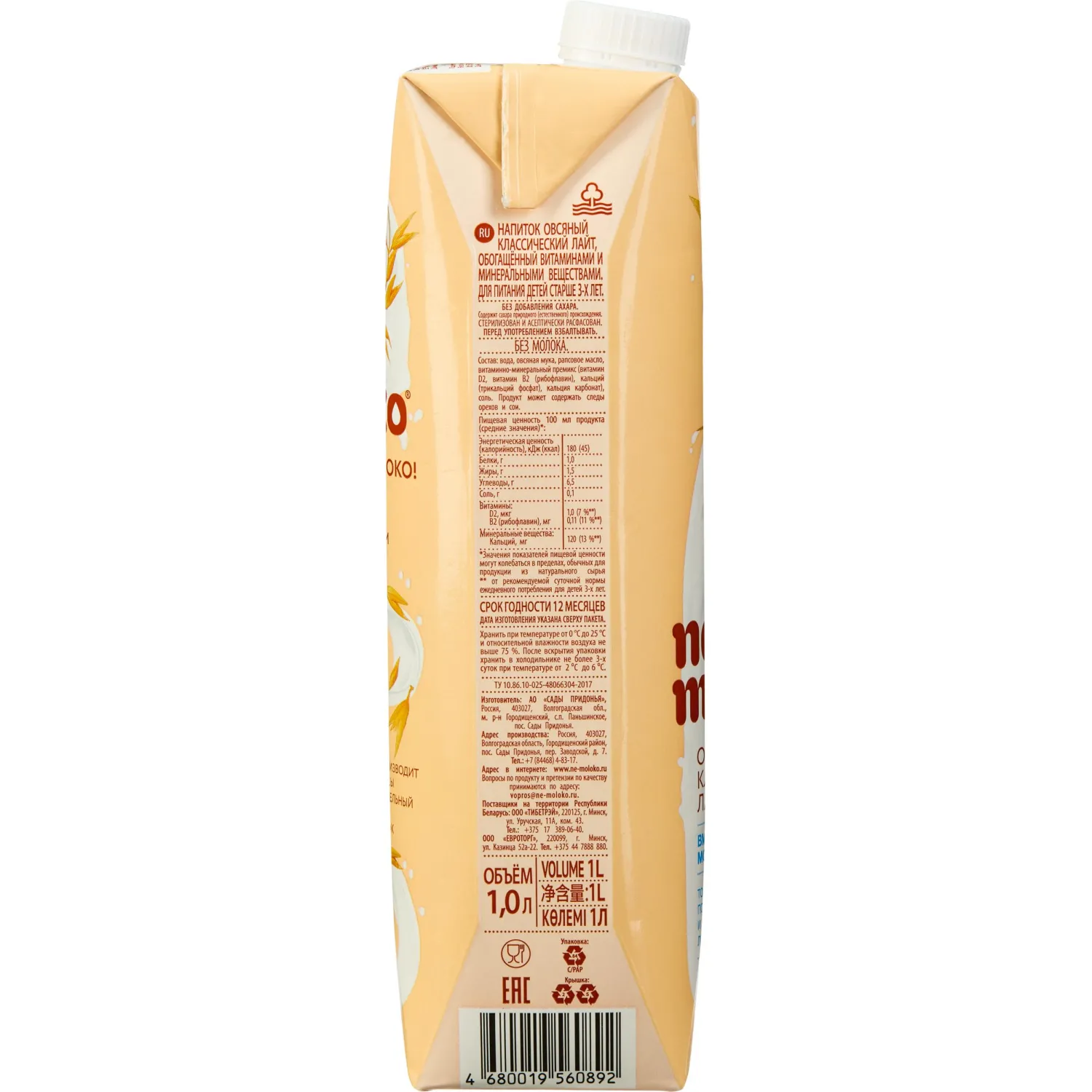 О товаре «Напиток растительный Nemoloko классический лайт овсяный 1 л»