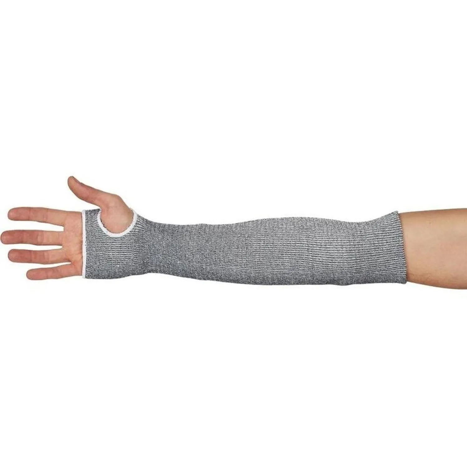 Двухслойный трикотажный нарукавник из высокопрочного волокна 'Дайнима' и полиамида для защиты запястья, предплечья и локтевого сгиба от истирания и порезов. Удобное отверстие для большого пальца обеспечивает защиту запястья. Стойкость на порез (усилие на образование пореза 1-го слоя более 16 н/мм2) т. е. 4-тый уровень защиты по EN 388-244ХХ. Работа с острыми кромками стекла, металла, пластика и т. д. Длина 45 см. Размер: 10.