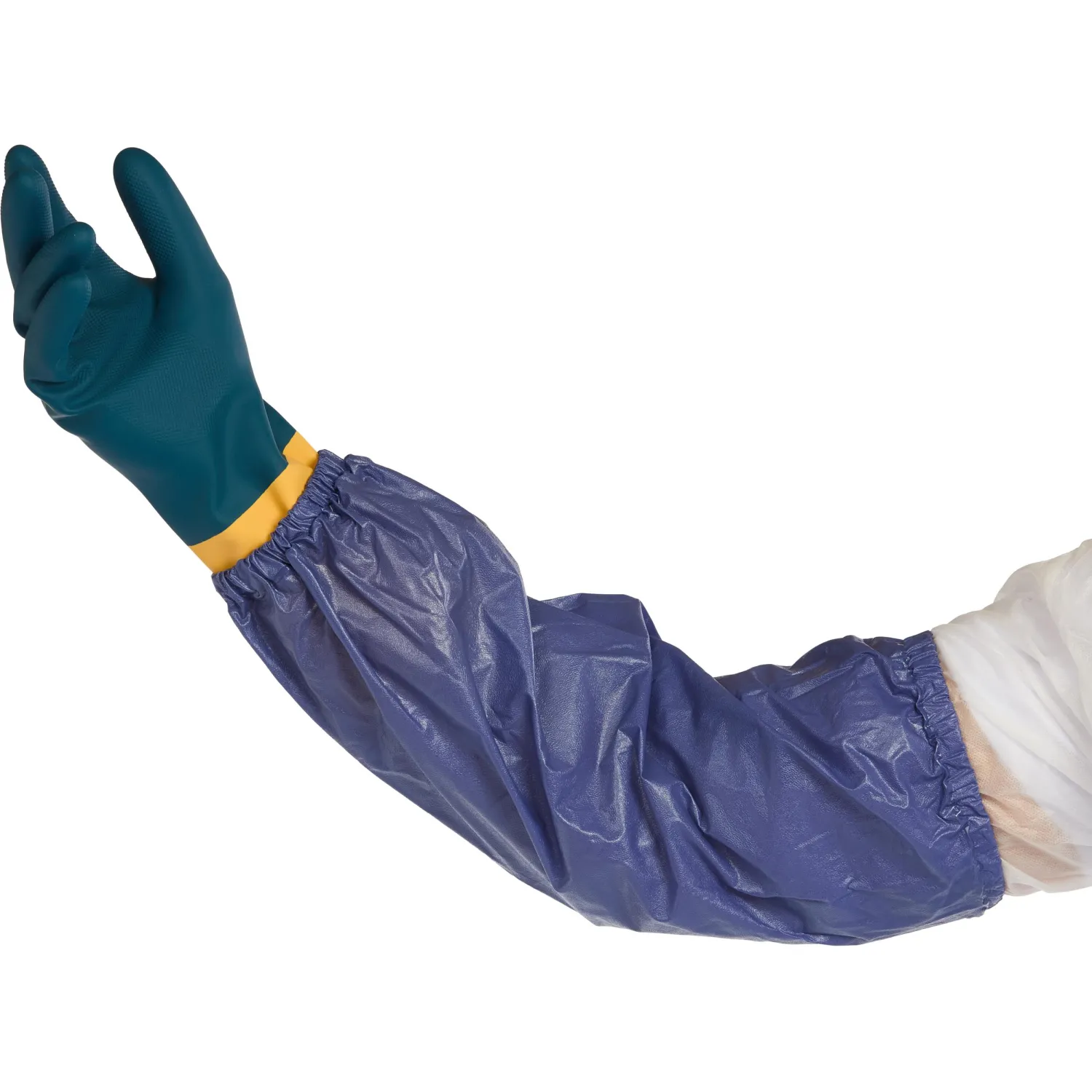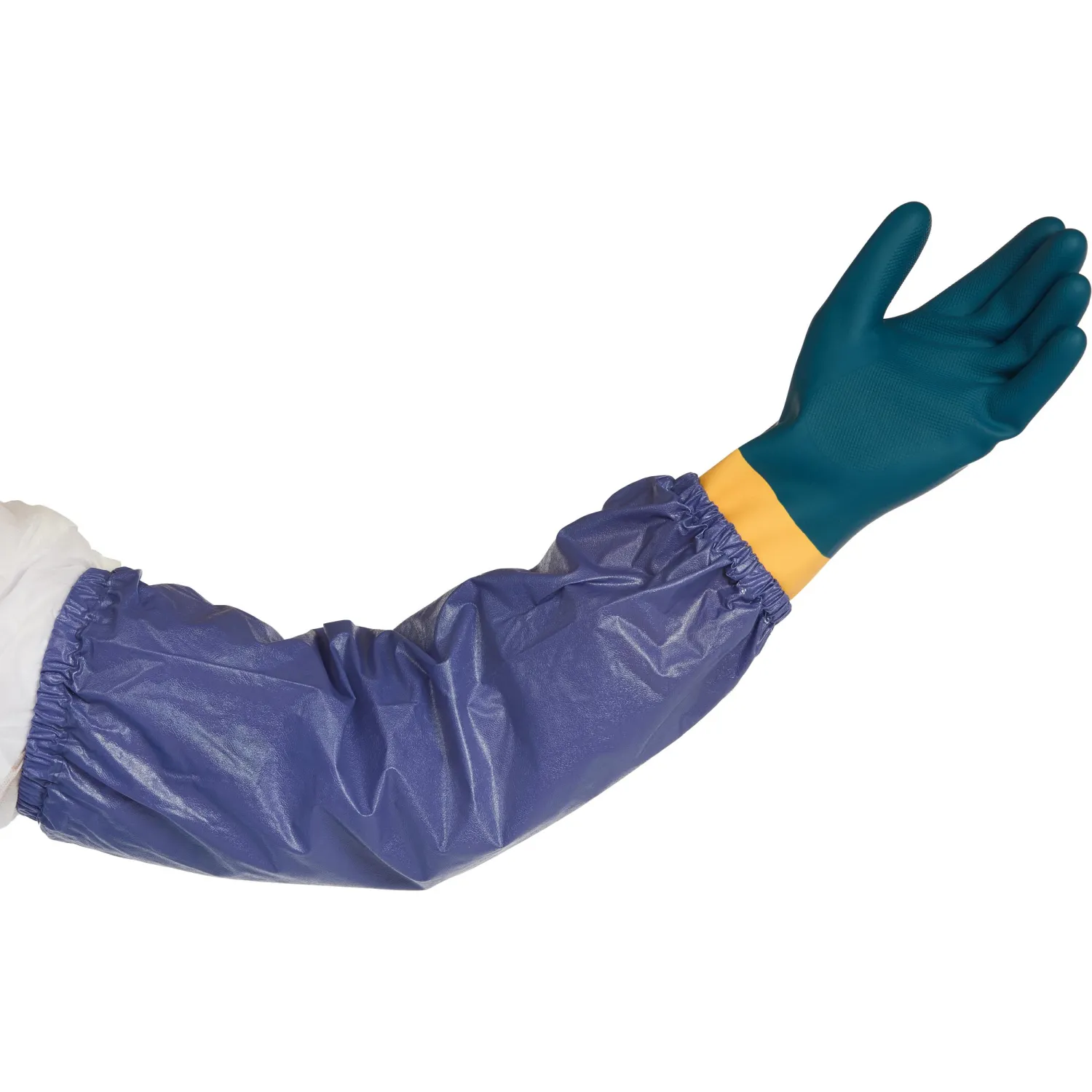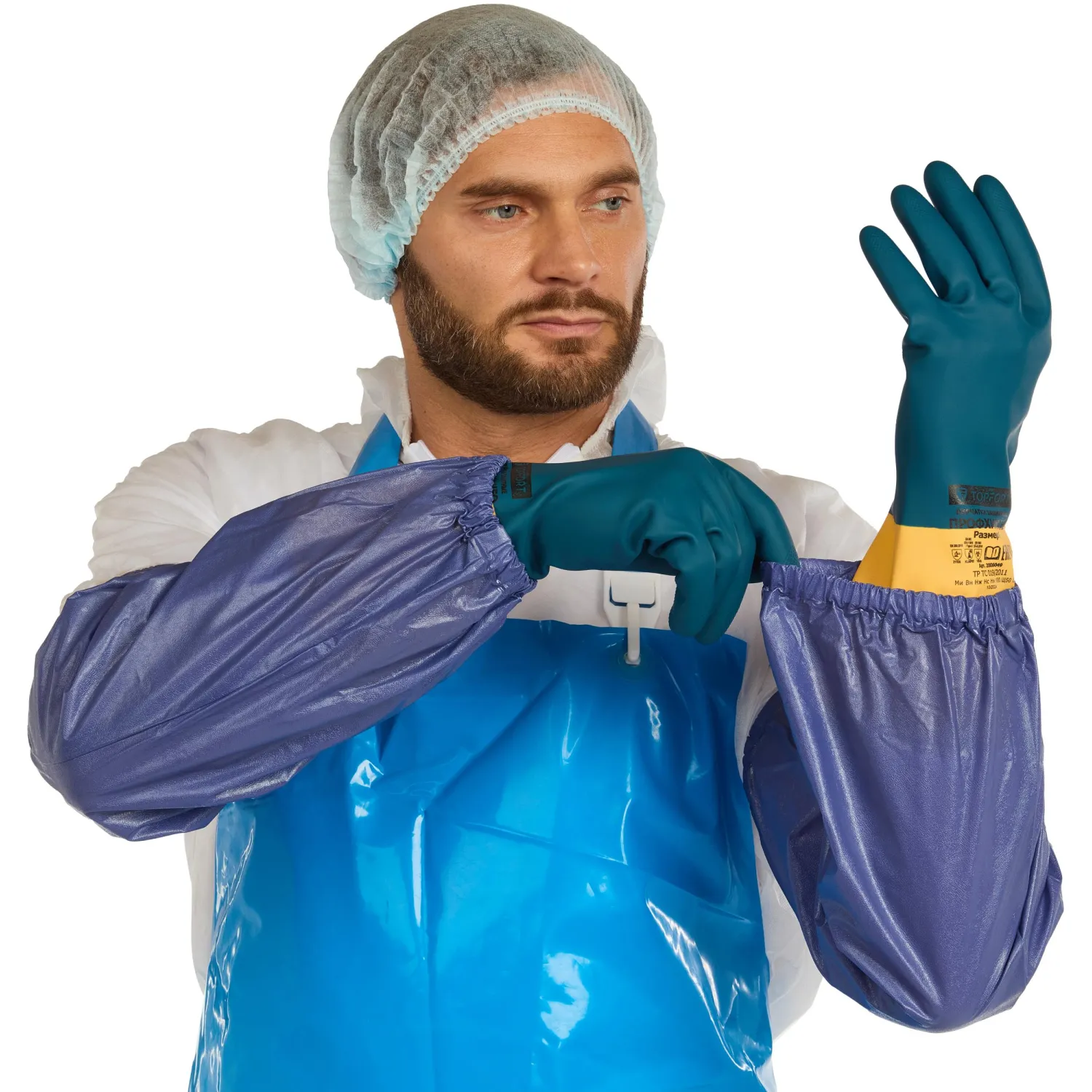 Нарукавники ПВХ для защиты от кислот и щелочей TOPFORT Профхим длина 46 см (2 штуки/1 пара в упаковке) не имеют трикотажной основы. Влагоустойчивы. Обладают отличной механической устойчивостью. Степень защиты от кислот до 80%. Предназначены для защиты от механических воздействий, от масел, жиров и продуктов нефтепереработки, растворов щелочей концентрацией до 50%.