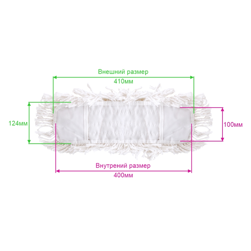 Насадка (МОП) изготовлена из хлопка с длинным ворсом. Хлопок дает высокую гигроскопичность насадке, при сухой уборке насадка хорошо убирает пыль, не позволяя ей разлетаться, а при влажной уборке отлично впитывает воду, не оставляя разводов на полу.