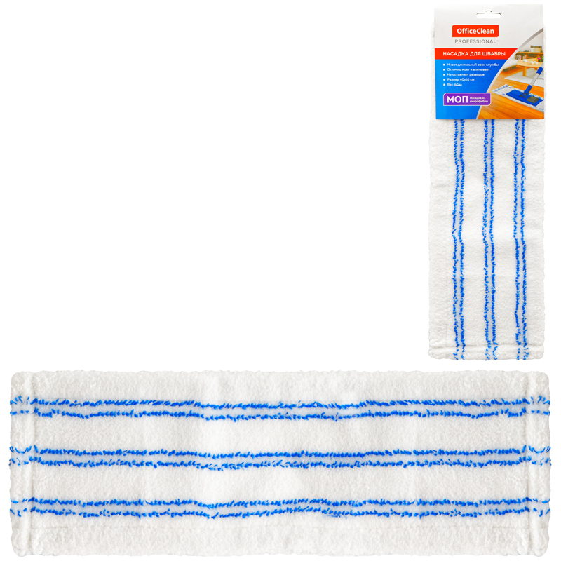 О товаре «Насадка МОП для швабры OfficeClean Professional с карманами, 40*10см, микрофибра\абразив, бело-синяя»