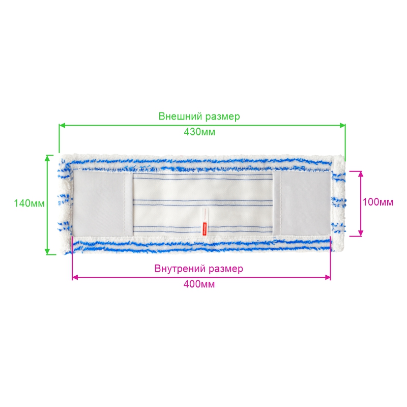 Тип насадки: плоская для складного флаундера. Материал: микрофибра с абразивными вставками. Крепление насадки: карманы. Максимальный объем впитывания: 150 мл. Размер насадки внешний: 43 х 14 см. Размер насадки внутренний: 40 х 10 см. Длина ворса: 0,8 см. Цвет: бело-синий. Вес: 60 г. Подходит к швабрам (Код: 266755, 266756, 303072, 303073).