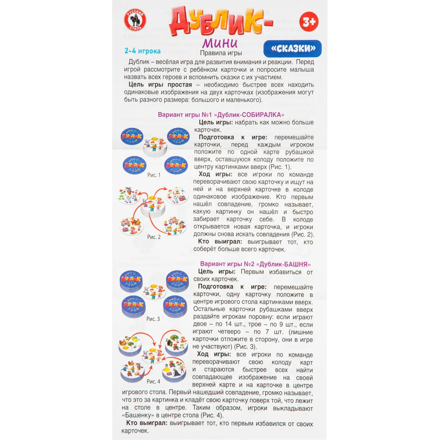 Настольная игра «Дублик-мини Сказки» ТМ «Русский стиль» представляет собой увлекательную карточную игру, в которой игрокам нужно найти совпадающие изображения как можно быстрее. В комплект входят 30 карт с изображениями сказочных героев, что позволяет детям не только развлекаться, но и познакомиться с персонажами популярных сказок. Игра развивает память, внимание и скорость реакции.
