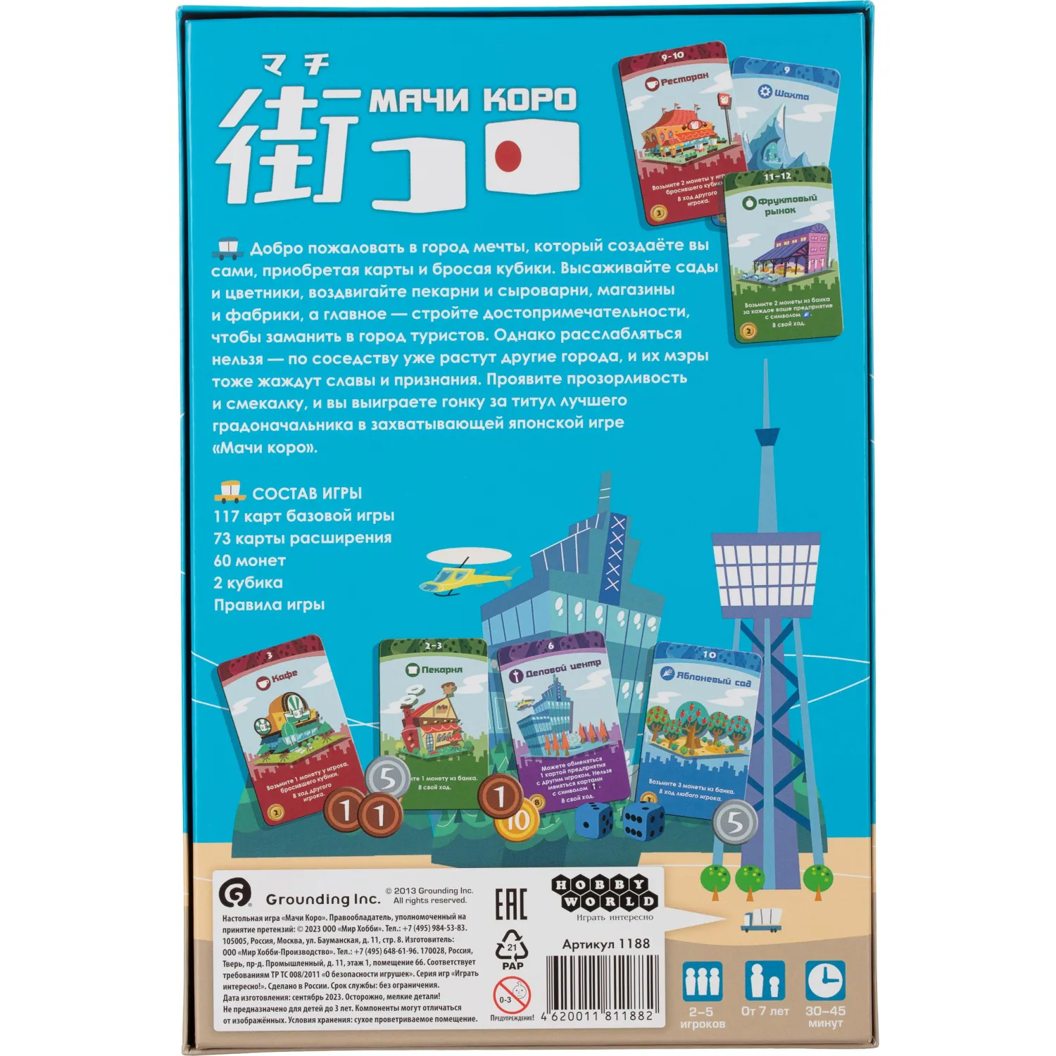 Добро пожаловать в «Мачи Коро» — увлекательную настольную игру, где каждый игрок становится мэром собственного города! Вам предстоит развивать инфраструктуру, строить магазины, фабрики, сыроварни и пекарни, а также возводить достопримечательности, чтобы привлечь туристов и сделать свой город процветающим.