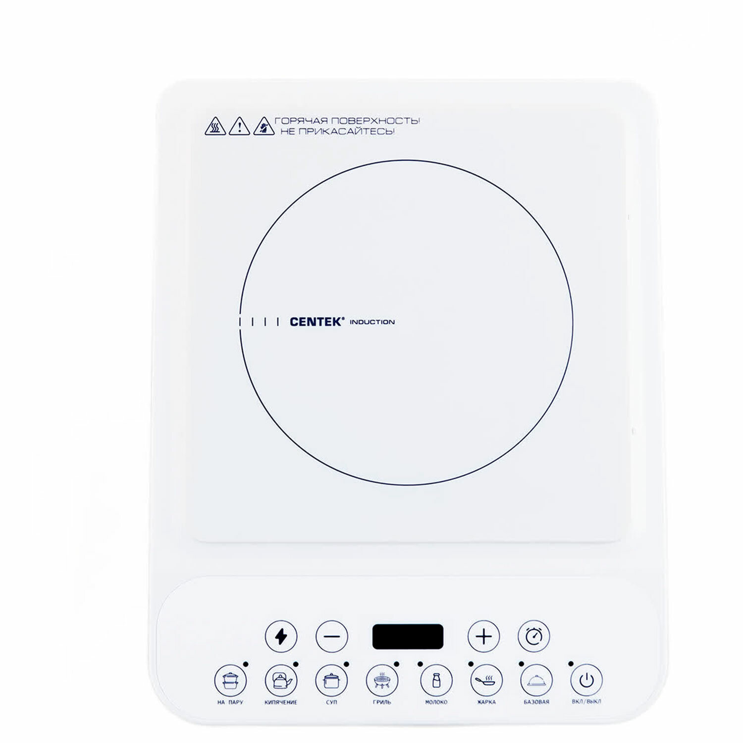 О товаре «Настольная индукционная плита CENTEK CT-1517, 2000 Вт, 7 программ, электронное управление, белая, CT-1517 White»