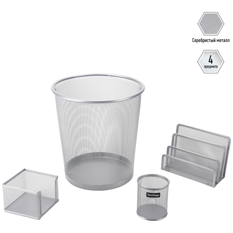 О товаре «Настольный набор из металла Berlingo "Steel&Style", 4 предмета, с корзиной, серебристый»